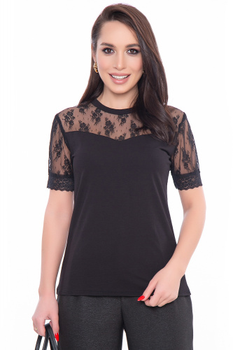 - Базовая блуза прилегающего силуэта со вставками из эластичного гипюра;