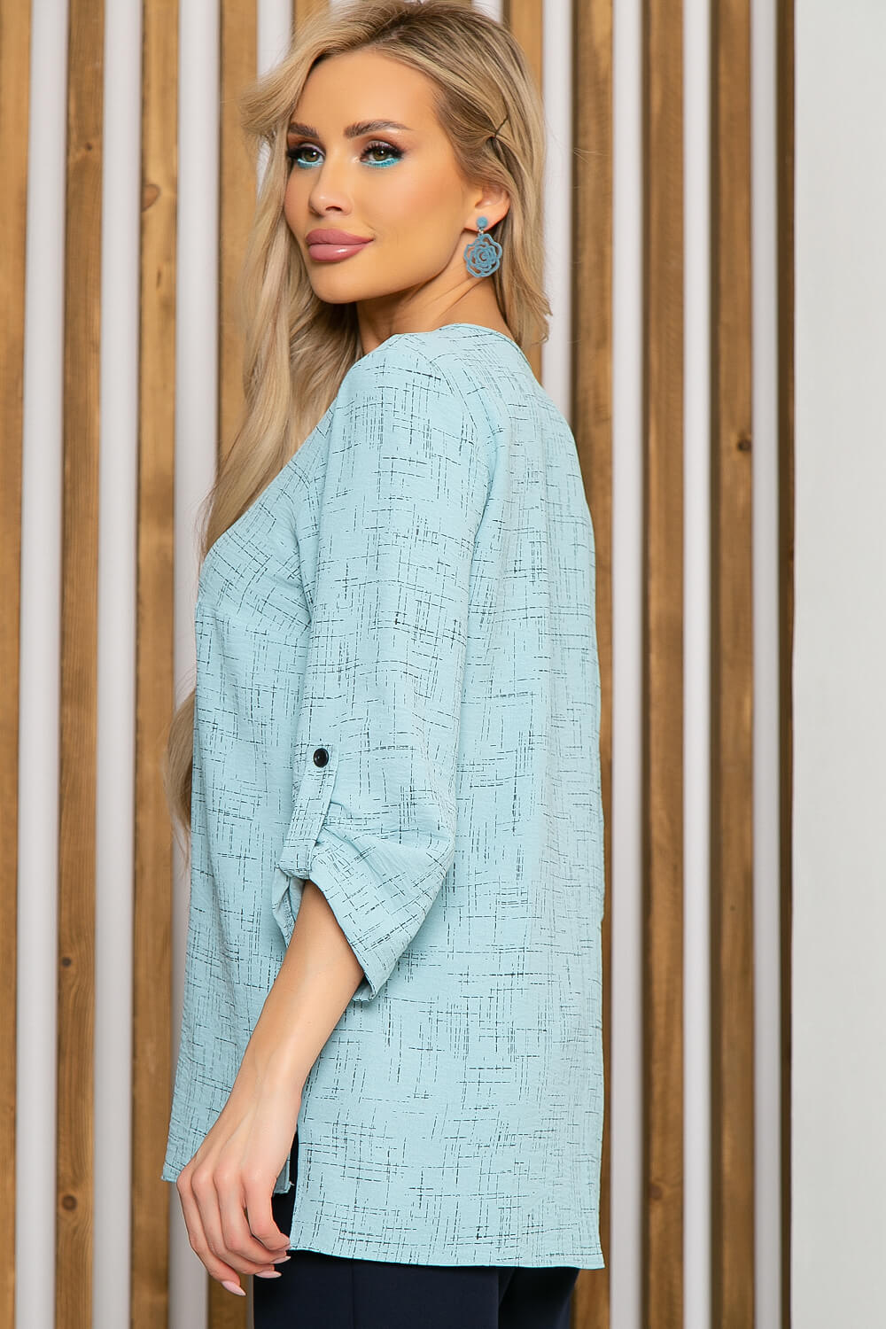 Блуза прямого кроя, вырез горловины округлый. Низ изделия ровный, небольшие разрезы по бокам, спинка удлиненная.