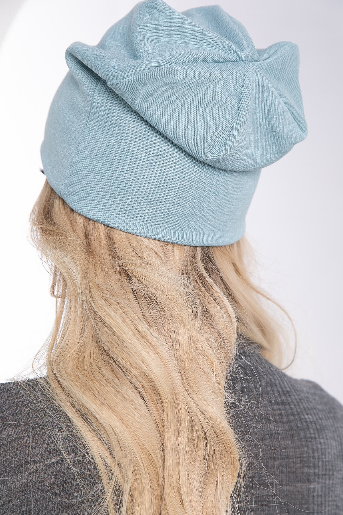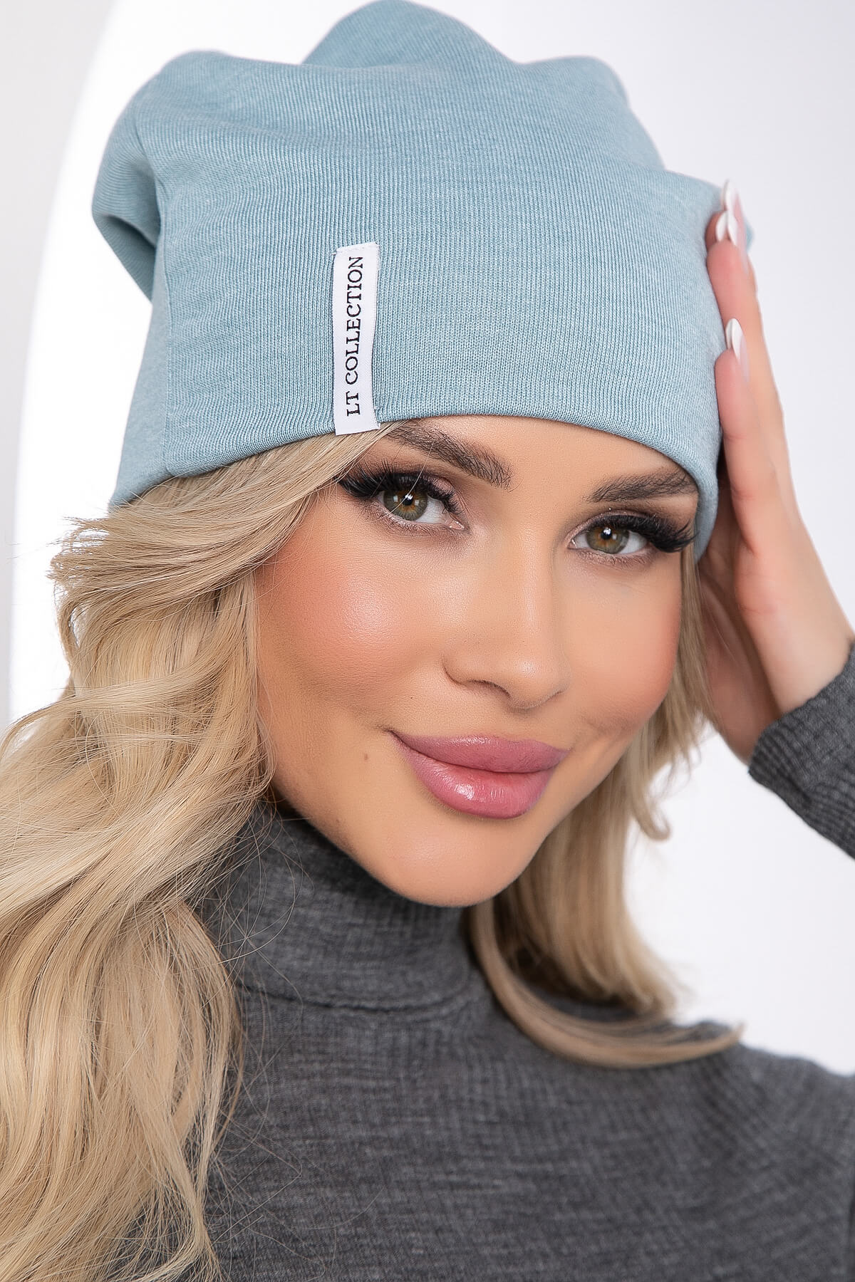 Брендовая яркая шапка LT Collection из трикотажа в бирюзовом цвете. Шапка имеет универсальную форму, состоит из 6-ти клиньев и подходит для любой формы лица. Можно носить с отгибкой и без.