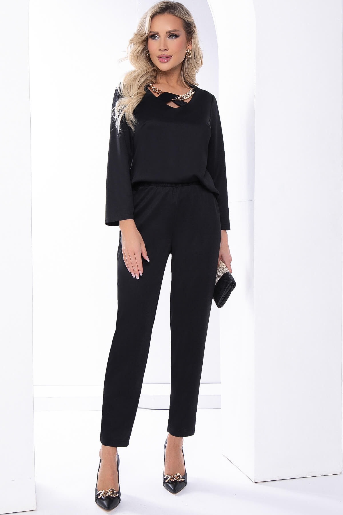 Создайте идеальный образ с новым костюмом из трикотажа с акцентной цепочкой на груди. Брюки удобного кроя по талии оснащены резинкой. Джемпер свободного кроя оформлен дополнительно украшением. Такой костюм прекрасно подойдёт для создания повседневного или делового образа.