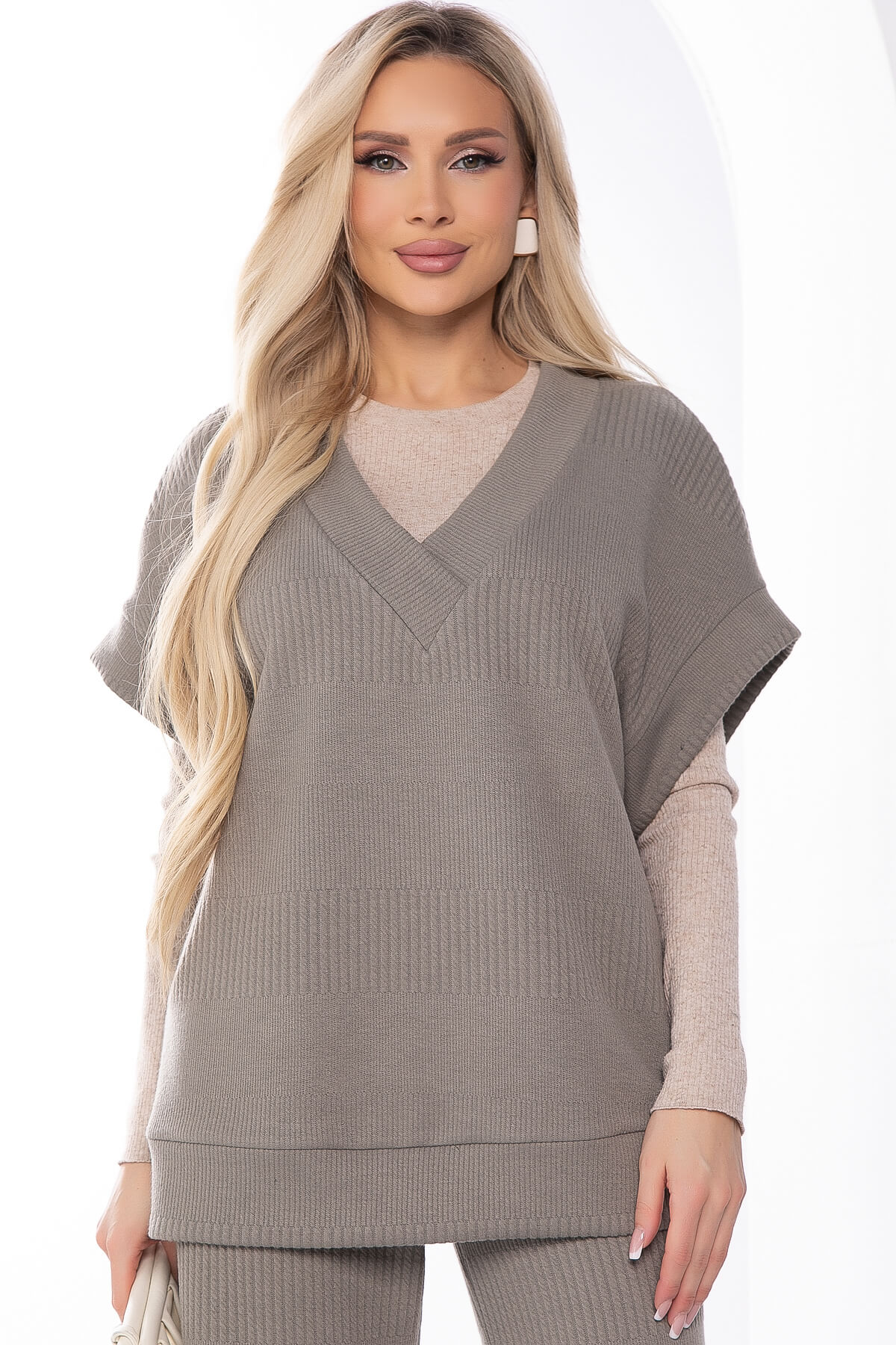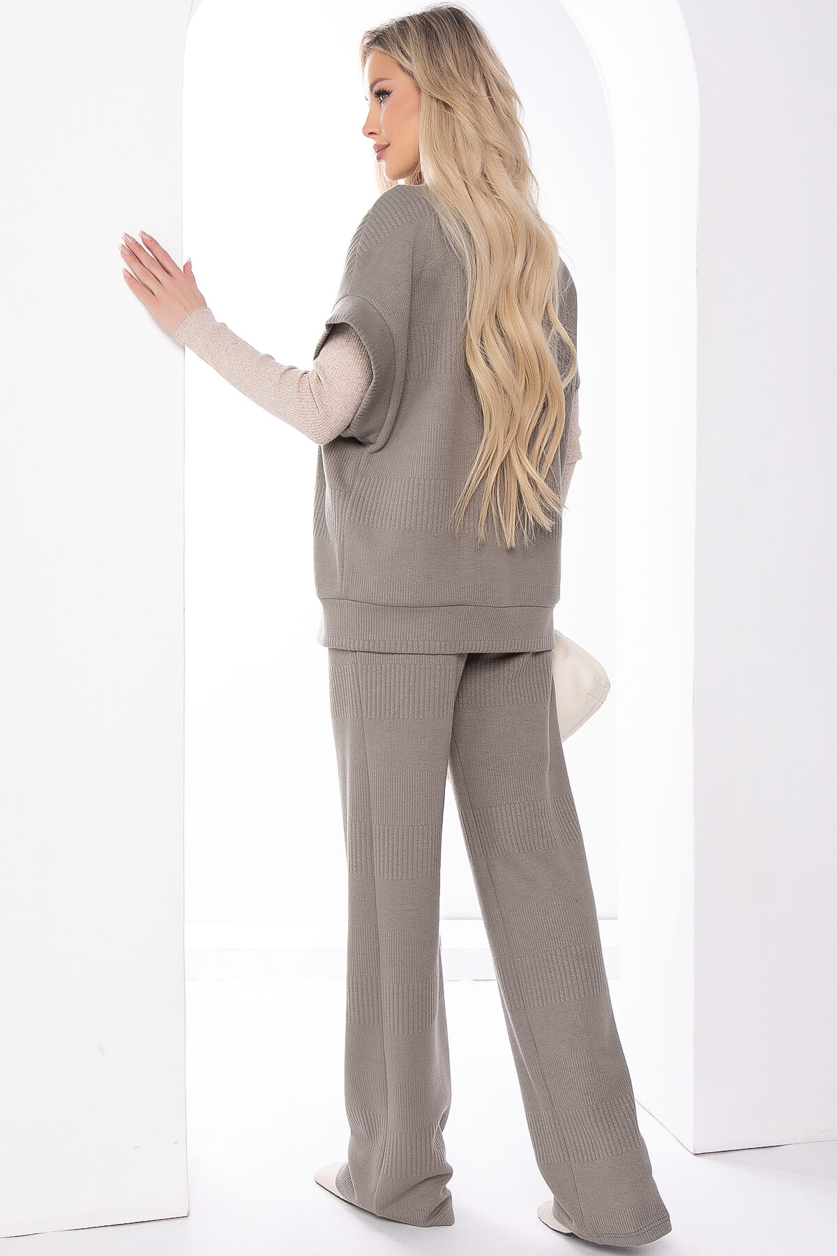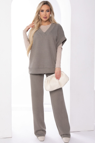 Костюм-двойка, состоящий из прямых брюк с высокой посадкой на резинке и жилета свободного кроя. Преимущество комплекта в том, что вы сможете самостоятельно носить как жакет, так и брюки. В повседневном образе смело сочетайте с лоферами или ботинками, а если нужен более официальный образ, с туфлями на каблуке.