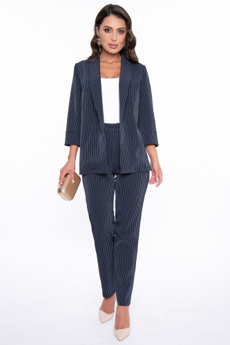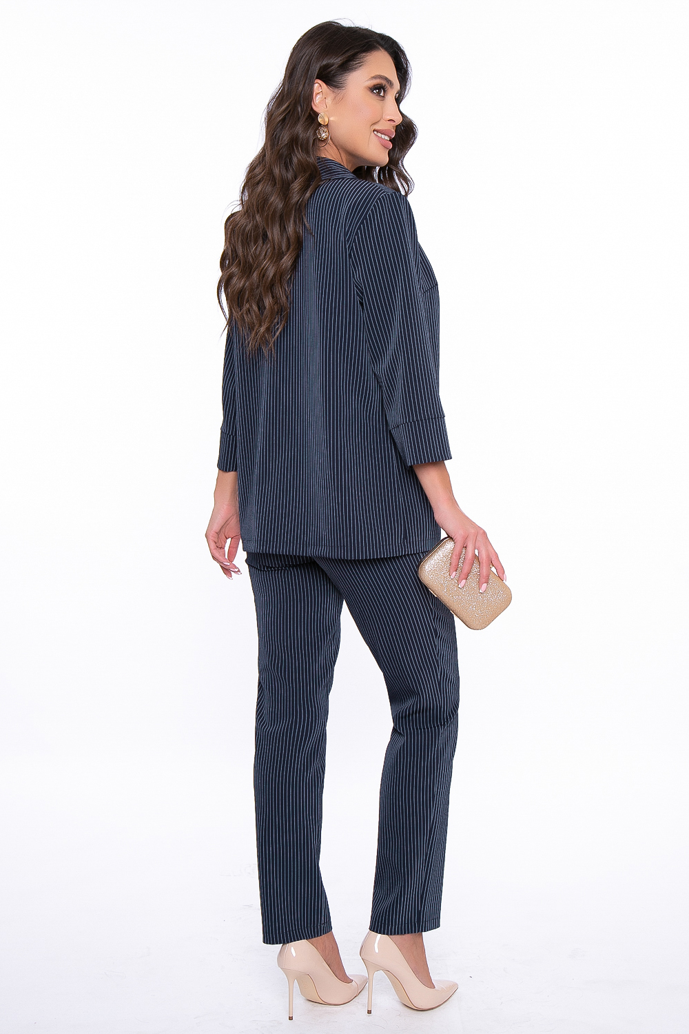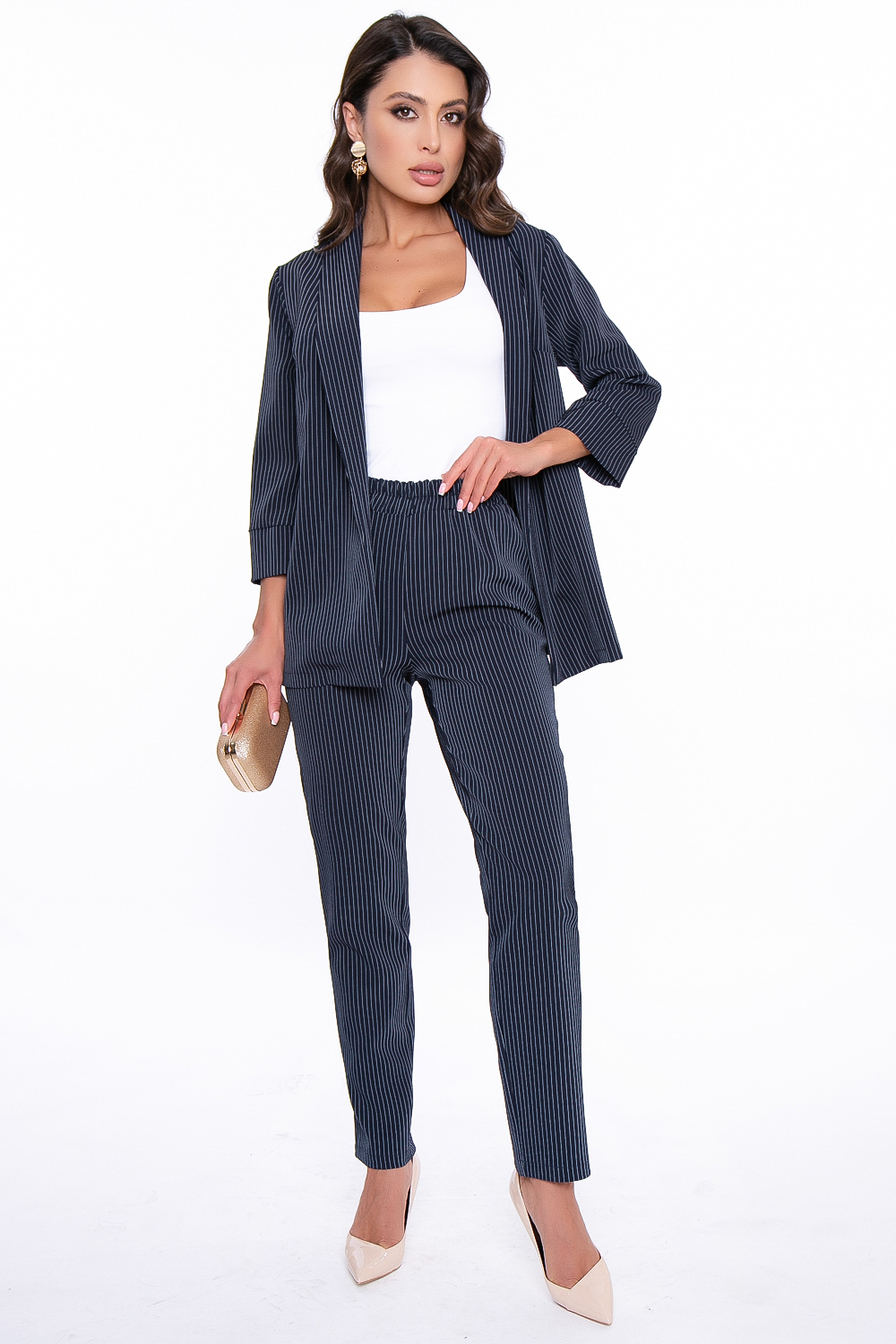 - Стильный брючный костюм базового синего цвета в мелкую полосу;