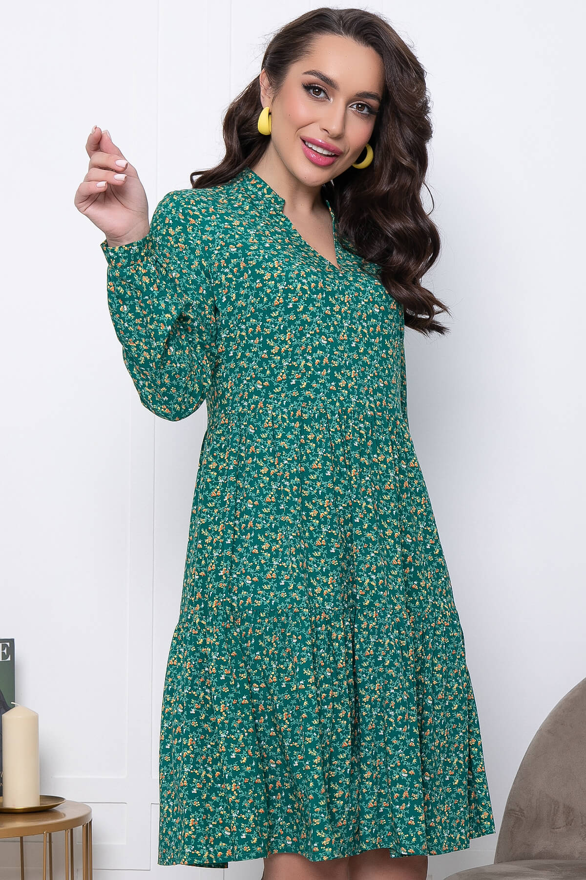Платье из штапеля с завышенной линией талии и пышной юбкой. Такой фасон с лёкостью скроет недостатки фигуры. Пышная юбка состоит из ниспадающих воланов, складки оттеняются мягким переливом ткани. Платье отлично садится по фигуре и подойдет на прогулку, свидание и даже на торжественное мероприятие!