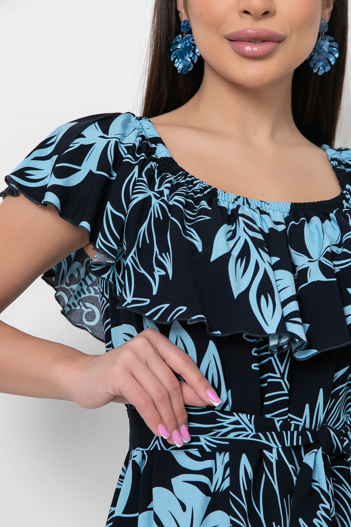 Платье свободного кроя изумительно смотрится как с каблучком, так и с кедами! Юбка с воланом по низу добавляет романтичности и воздушности образу. Изделие украшает акцентный рукав и вырез, позволяющий открыть одну из самых женственных частей тела - плечи и ключицу.