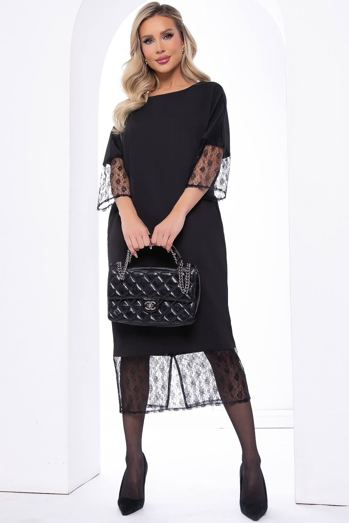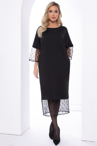Платье свободного кроя с декоративными вставками из гипюра по низу изделия и на рукавах. Идеальный вариант на любое торжественное мероприятие! Рукав цельнокроенный, втачной. Свободный крой платья позволит скрыть недостатки фигуры.