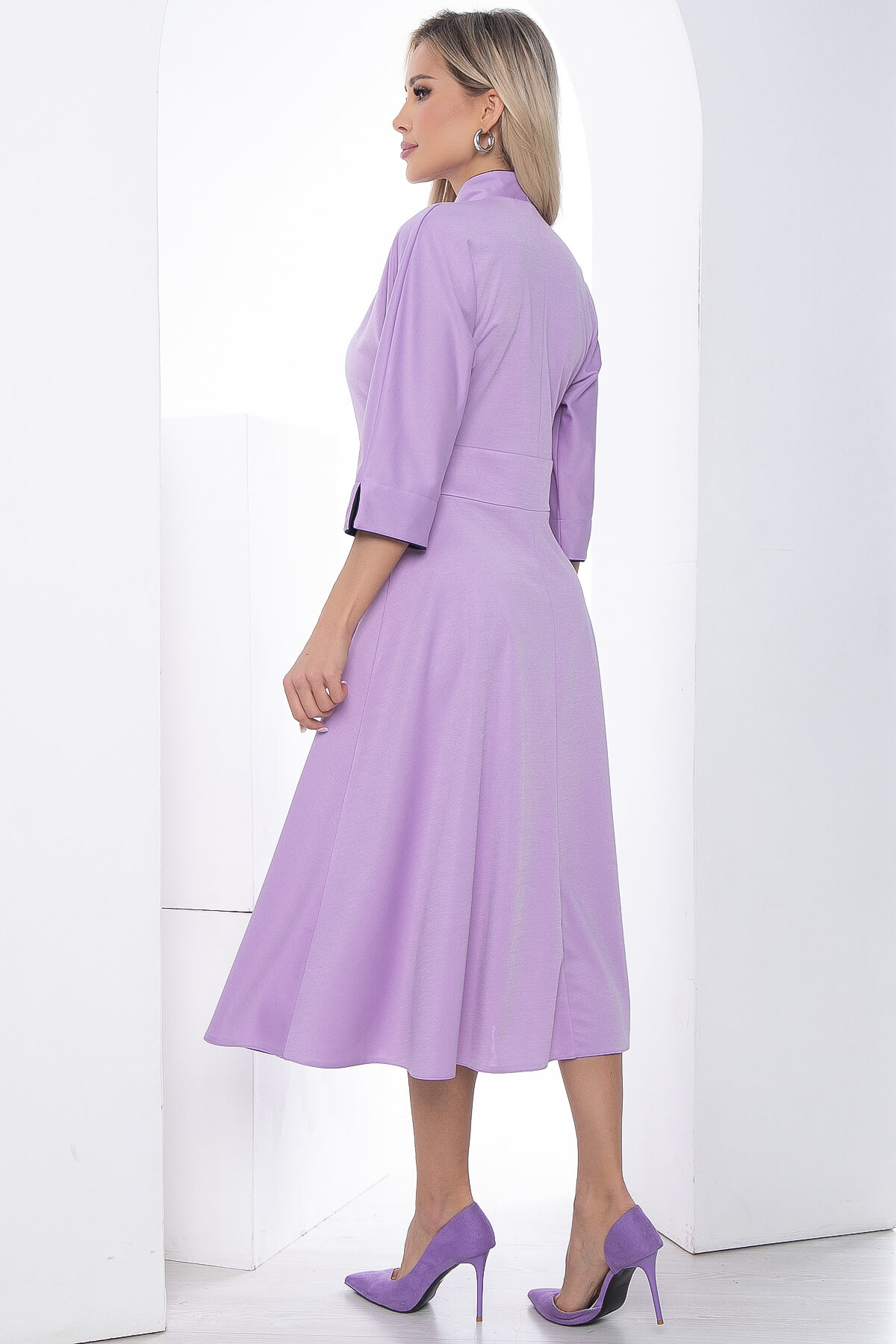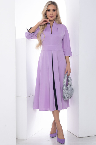 Платье - экспрессия! Элегантное сочетание сиреневого и тёмно-синего цвета подчеркнут вашу индивидуальность. Крой юбки - полусолнце. По центру юбки встречная складка тёмно-синего цвета. Рукава цельнокроеные, три четверти, с манжетами и с разрезами на тёмно-синей