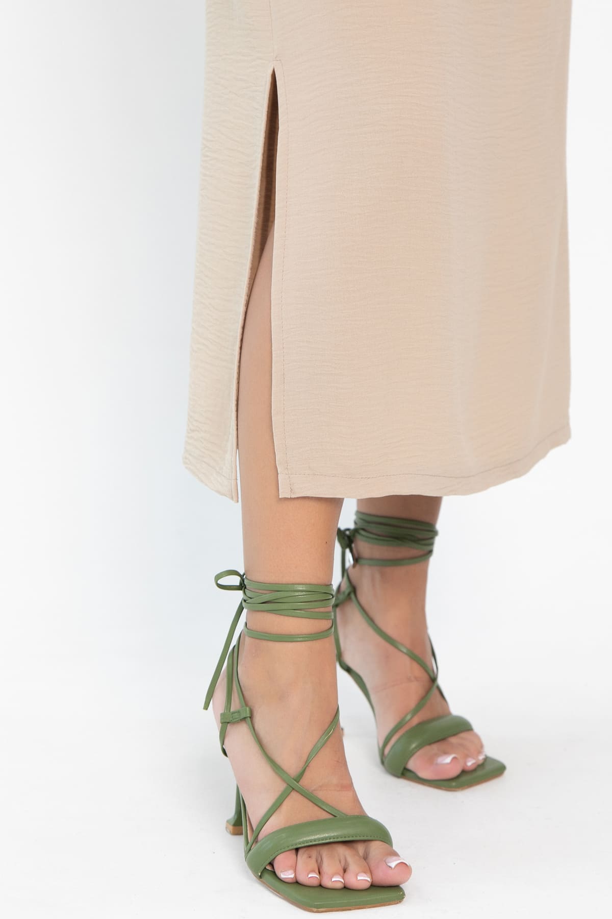 Платье в бежевом цвете — это ваш универсальный спутник на все случаи жизни. Оно комфортное и подходит для любых ситуаций — будь то прогулка по городу или романтический ужин. Благодаря небольшим разрезам по бокам, платье выглядит игриво и легко. Однотонная палитра платья позволяет экспериментировать с аксессуарами. А кулиска на талии подчёркивает фигуру и создаёт идеальный силуэт.