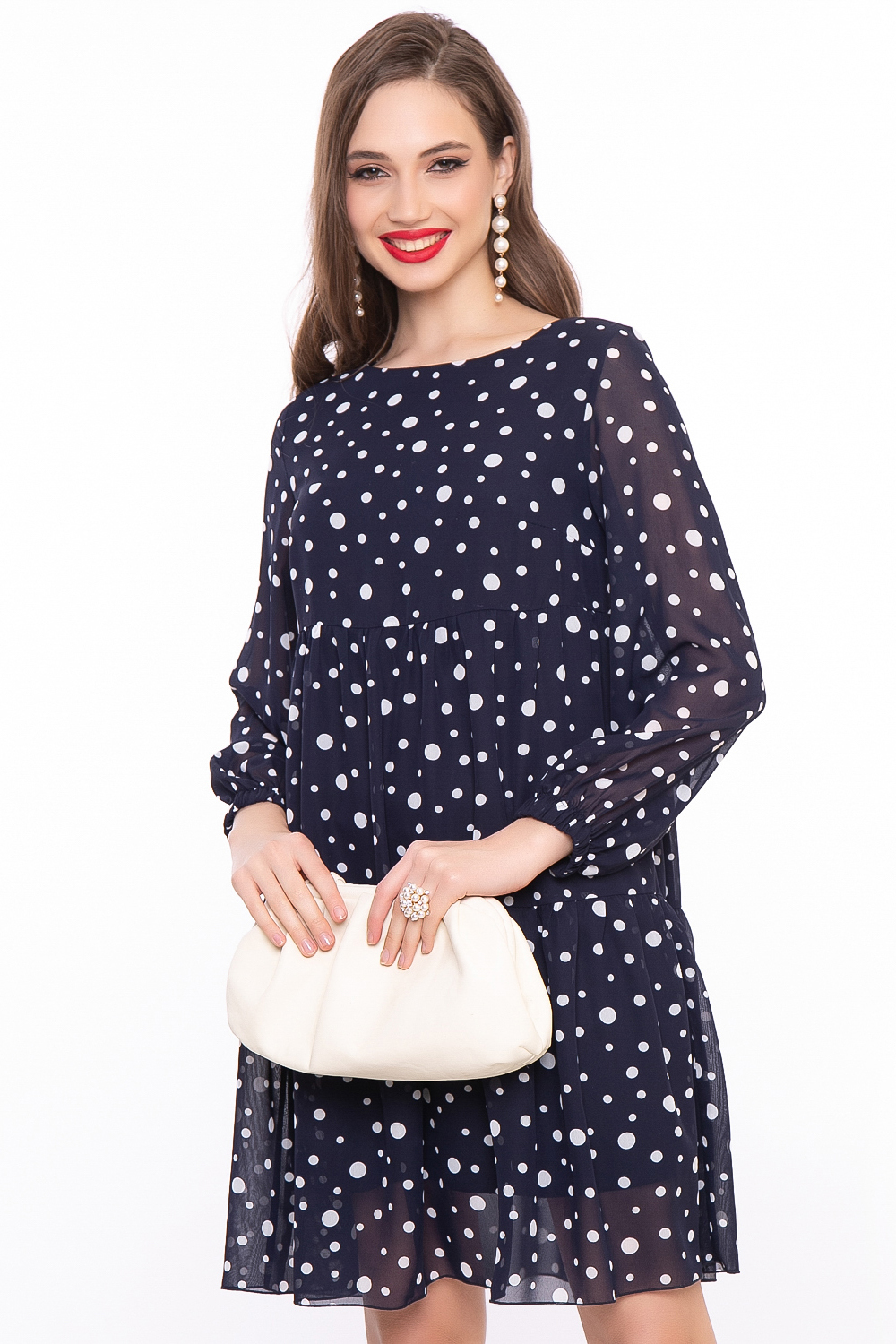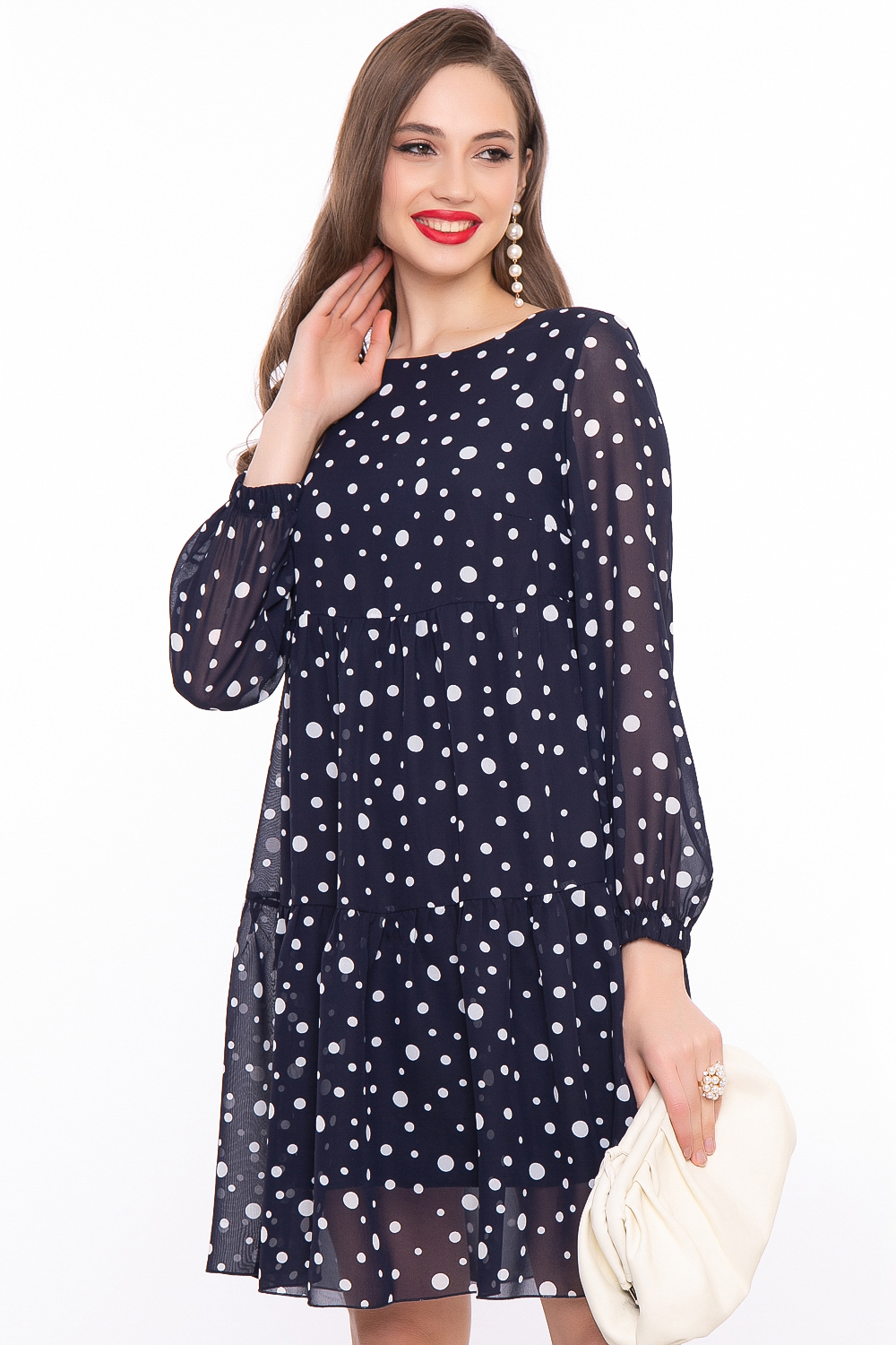 Удобное свободное платье с принтом "Горох" актуально в любой сезон и подойдёт как для создания повседневного, так и праздничного образа.