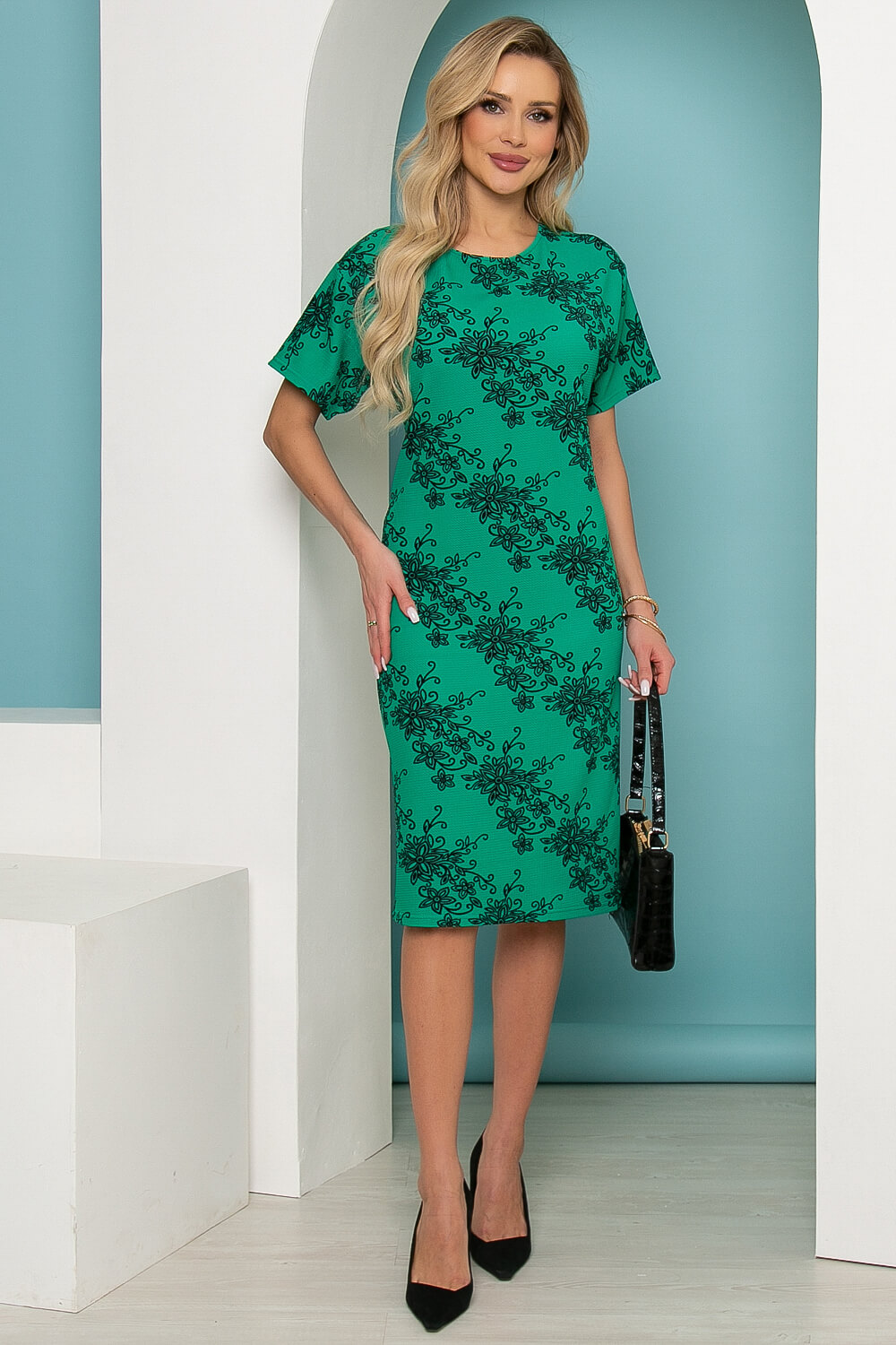 Яркое платье для ярких эмоций. Предлагаем разнообразить гардероб по-настоящему яркими вещами, например, платьем с цветочным принтом в сочном зелёном оттенке. Полуприталенный крой, средняя длина, короткий рукав и округлый вырез горловины - составляющие комфортного летнего стиля. В сочетании с чёрным жакетом станет акцентным элементом делового образа.
