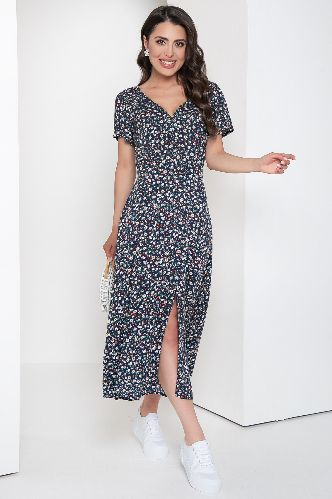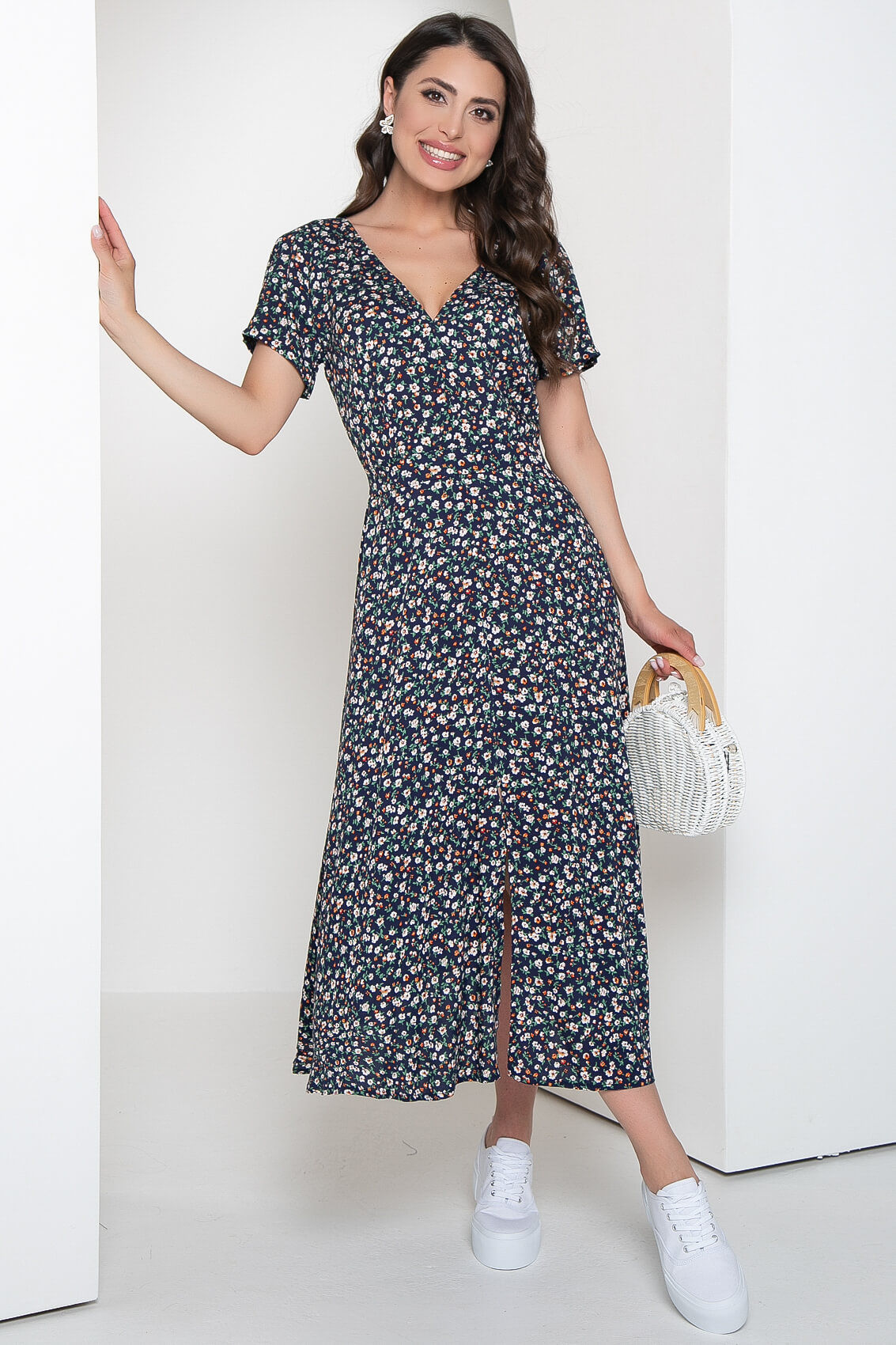 Элегантное платье, которое прекрасно подойдет для прогулки или свидания! Хорошо сочетается с каблучком и с обувью на низком ходу. Хит сезона - платье длины миди из натуральной ткани, с очень популярным сейчас цветочным принтом. Мягкий V-образный вырез красиво подчёркивает шею, тонкий поясок - подчеркнет талию. Небольшой разрез по переду выразительно подчеркнет и удлинит Ваши ножки! В боковом шве потайная молния.