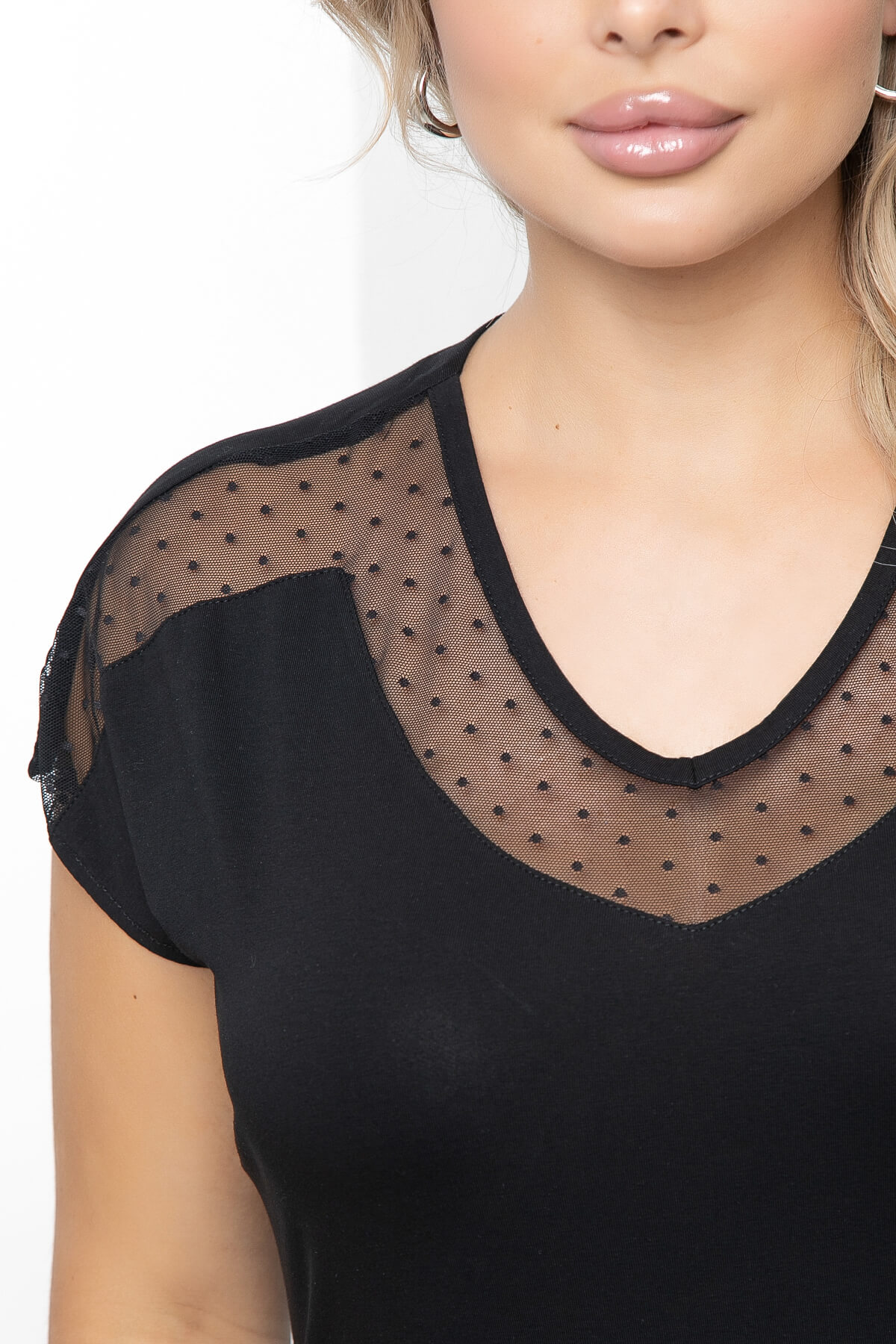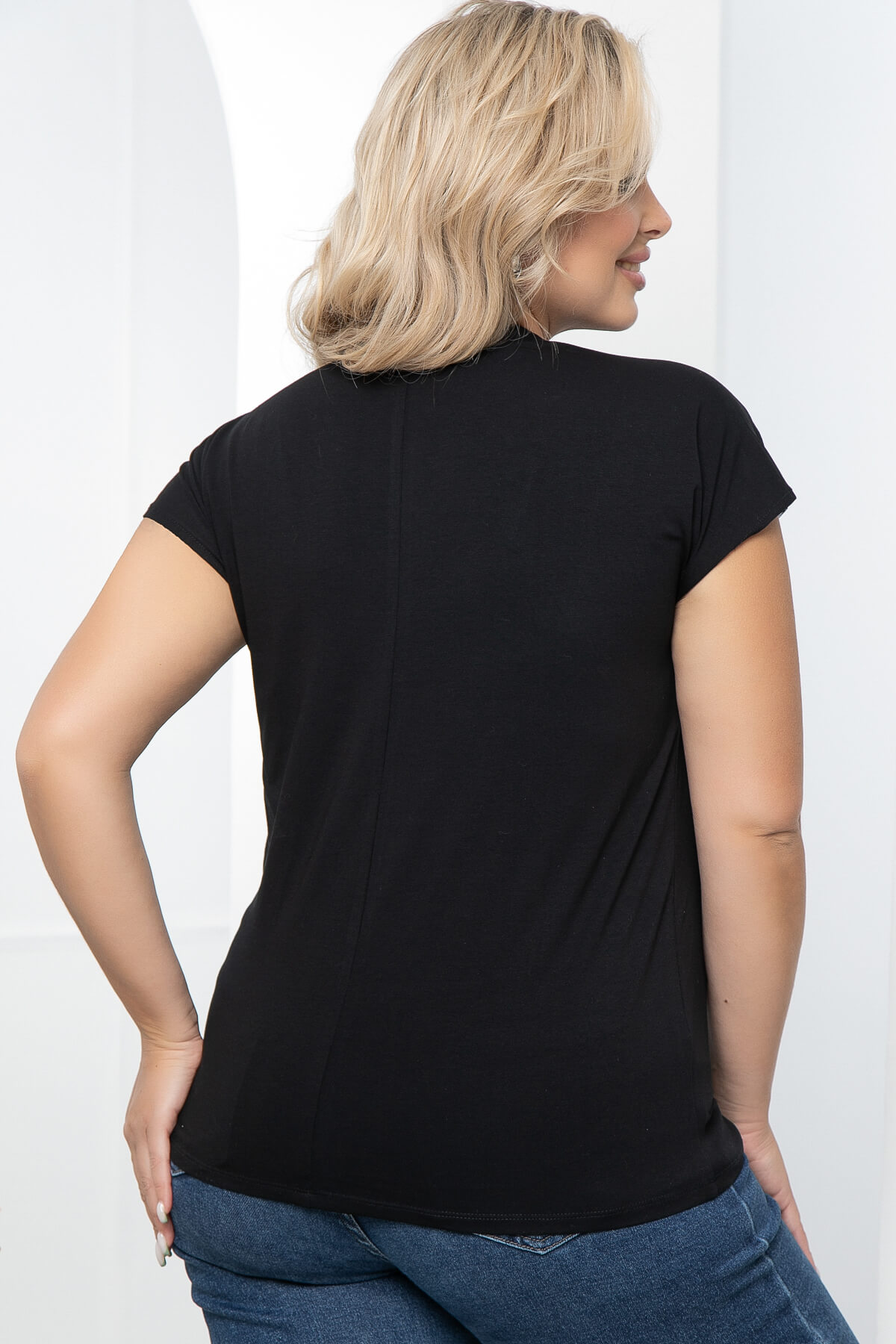 Женственная блуза с акцентным декольте добавит лёгкости Вашим офисным образам. Отлично смотрится как с брюками, создавая деловой стиль, так и с джинсами. Идеально подходит для повседневной жизни. Рукав укороченный, цельнокроенный с акцентными вставками.