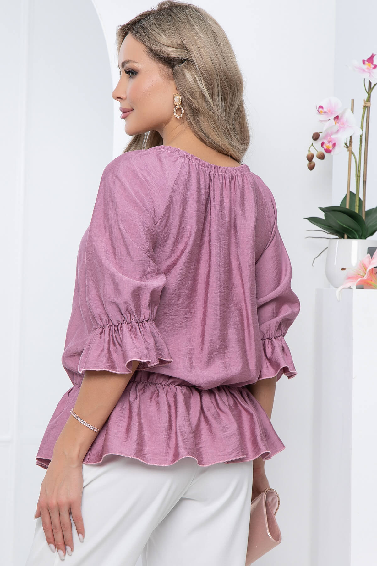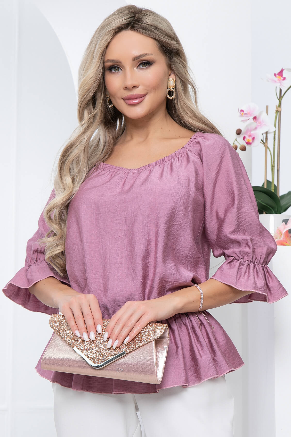 Блуза в модном оттенке - это отличная возможность проявить свою женственность. Рукав три четверти, по низу украшен воланом. Само изделие так же украшено по низу воланом, что придает образу легкости и воздушности. Горловина отработана резинкой, это позволяет спустить блузу на плечи, что придаст образу кокетства. Отлично будет смотреться как с брюками, так и с джинсами.