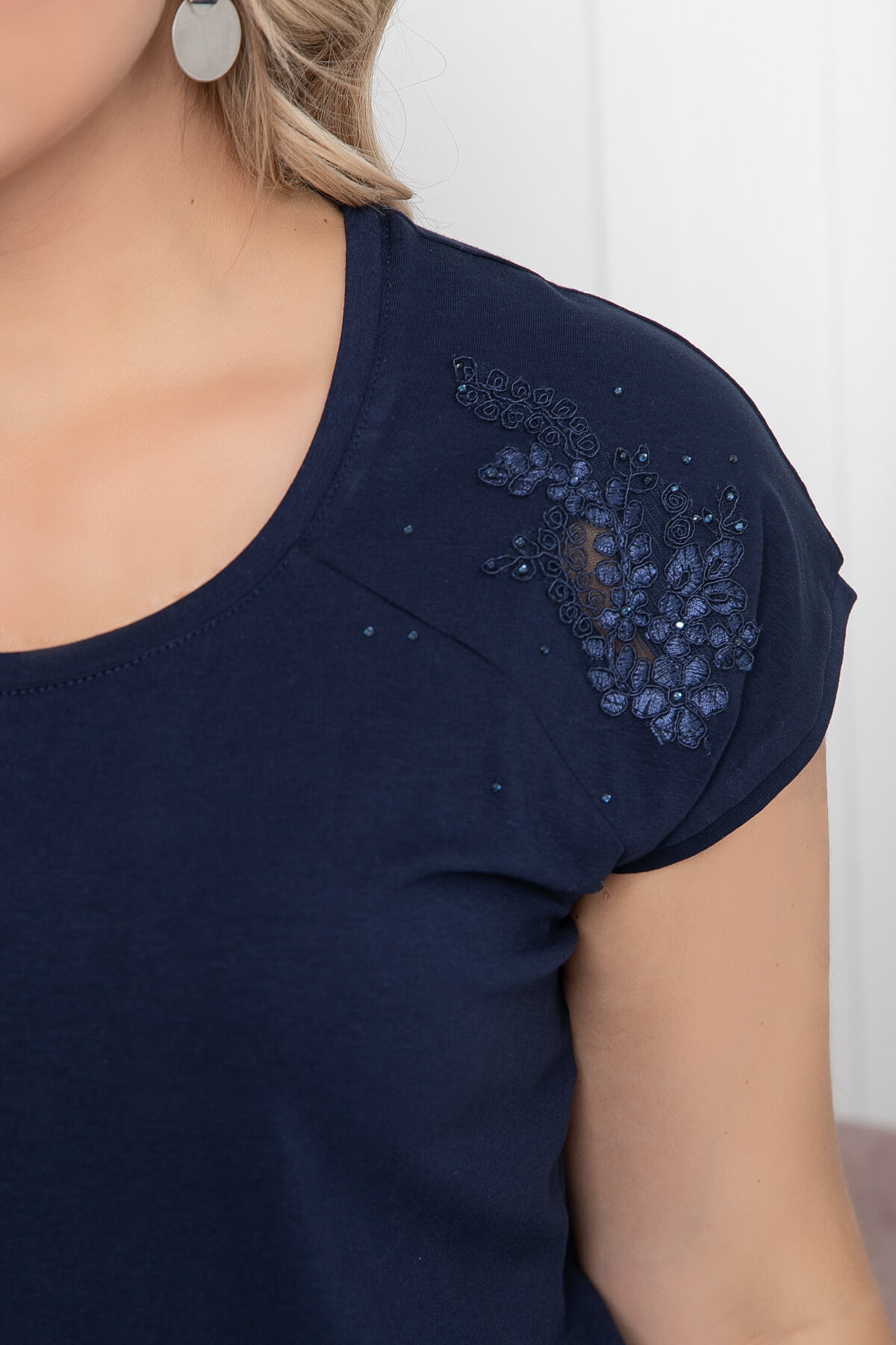 Базовая блуза - это незаменимый помощник в любом гардеробе. С ней можно сочетать практически все элементы одежды и выглядеть всегда роскошно! Рукав укороченный, цельнокроенный, украшен элементами декора.