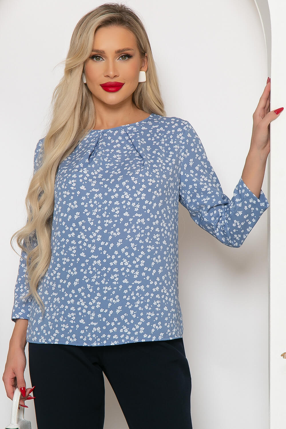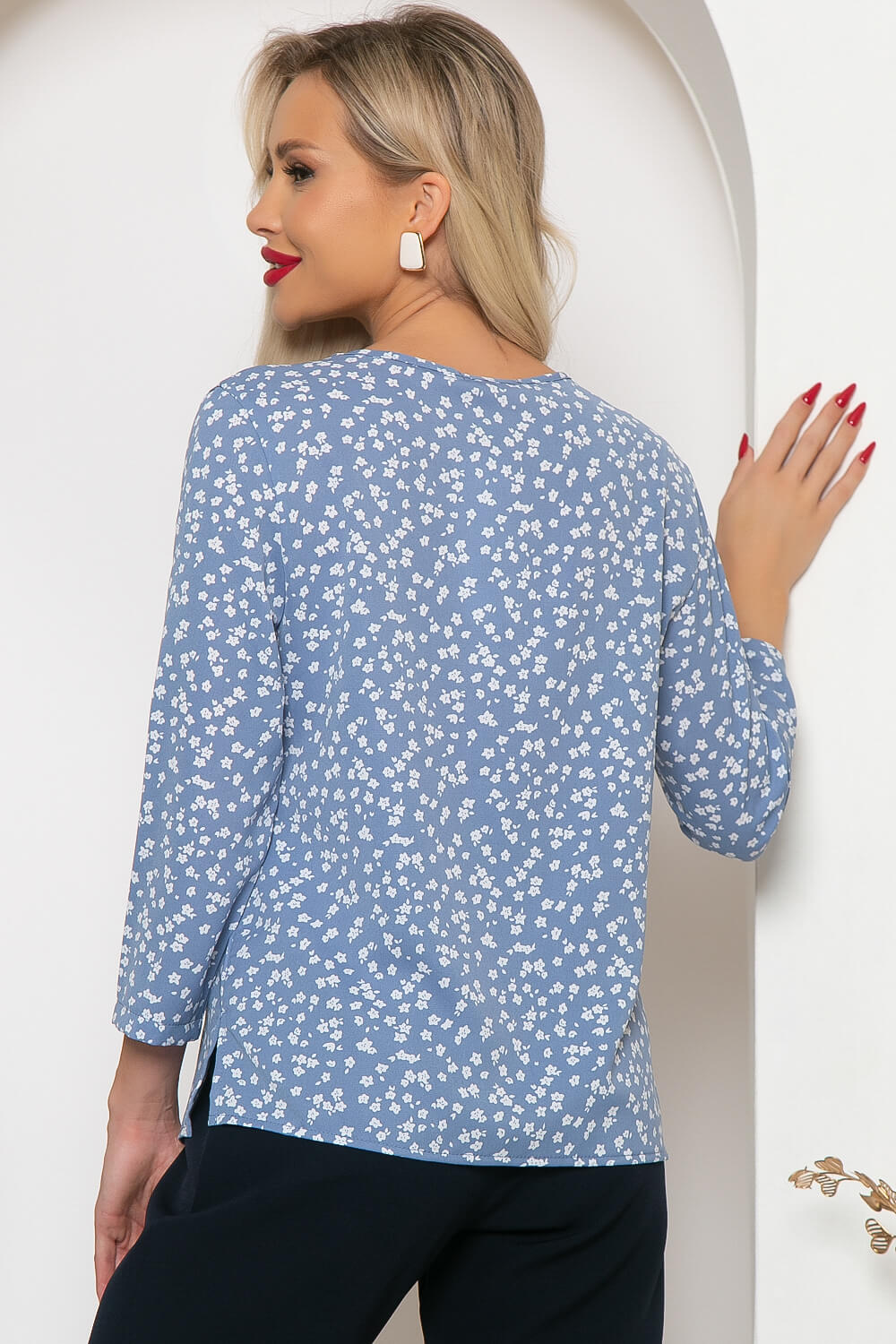 Классический вариант блузы, украшенный женственным цветочным принтом. Блуза прямого кроя имеет небольшие разрезу по боковым швам, что позволят носить её навыпуск или под заправку. Пояс из основной ткани при желании подчеркнёт линию талии. Удобная длина рукава - семь восьмых.