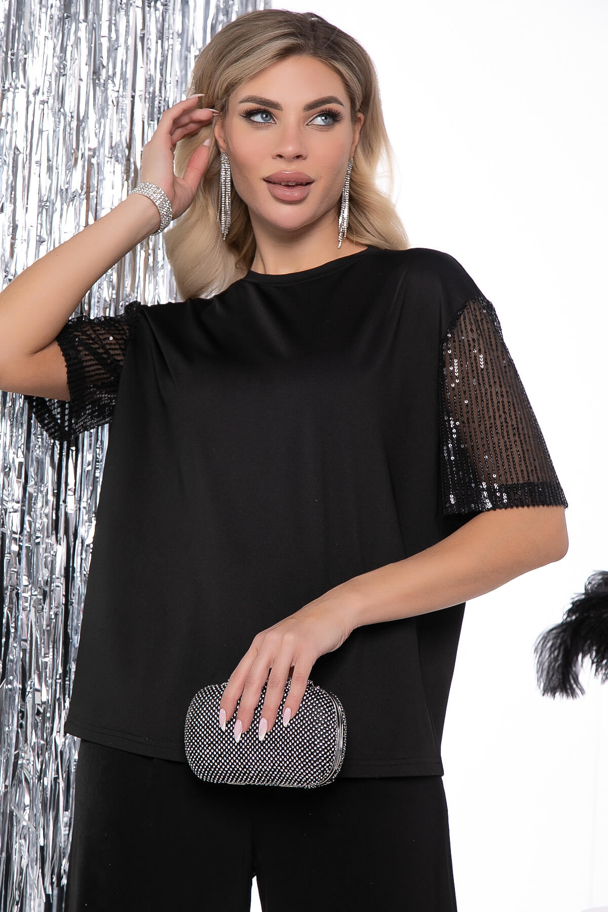 Очаровательная блуза свободного кроя из мягкого трикотажа – идеальный выбор для стильных женщин. Украшенная блеском пайеток на рукавах, она придает образу неповторимый шарм. Изысканный дизайн и комфорт в одном – подчеркните свою неповторимость с этой блузой. Рукав укороченный, втачной.