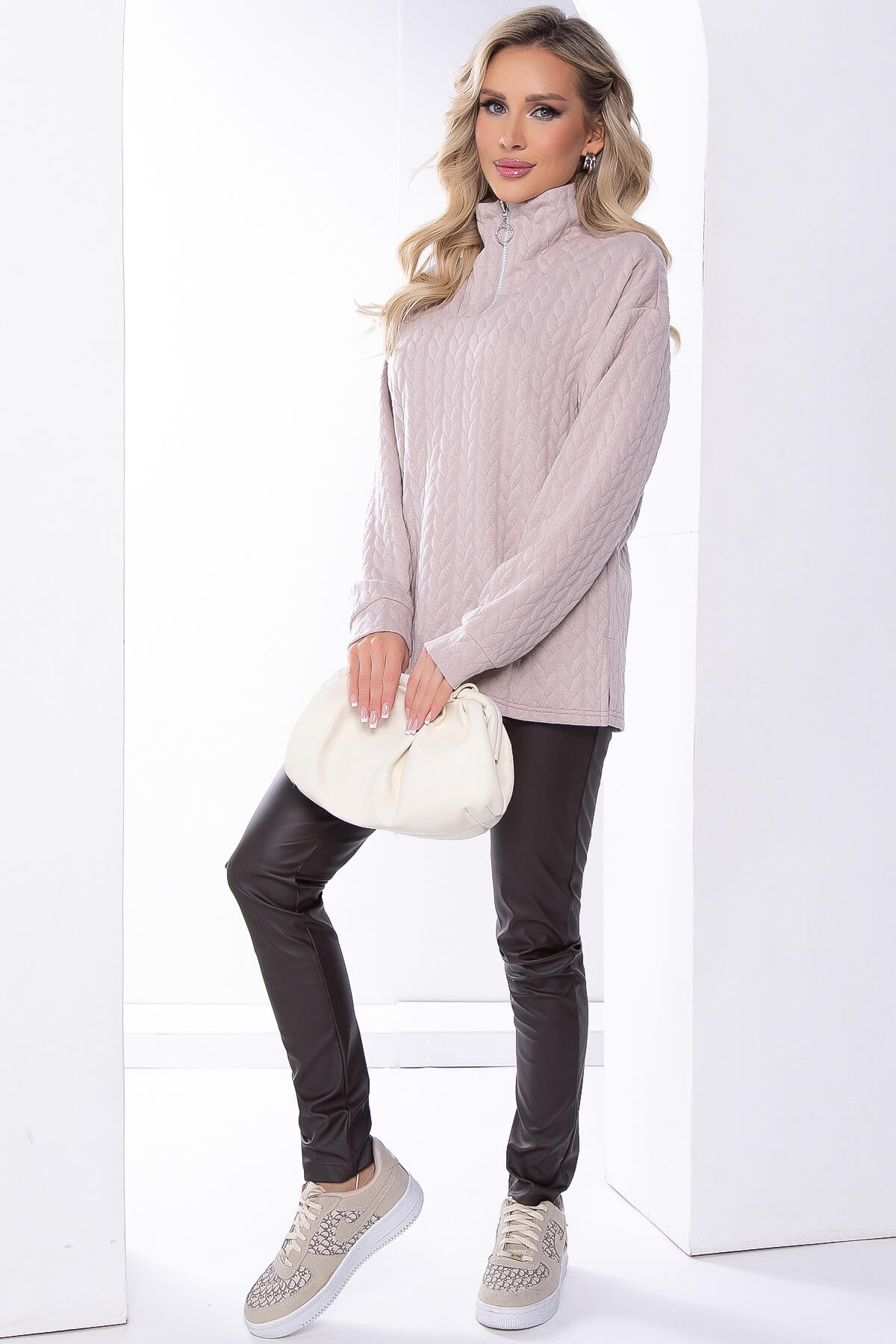Универсальная модель джемпера, которая прекрасно подойдёт для повседневных образов. Длинный рукав на манжетах и воротник-стойка на молнии подарит дополнительный комфорт при ношении. Изделие отлично смотрится с брюками или джинсами.