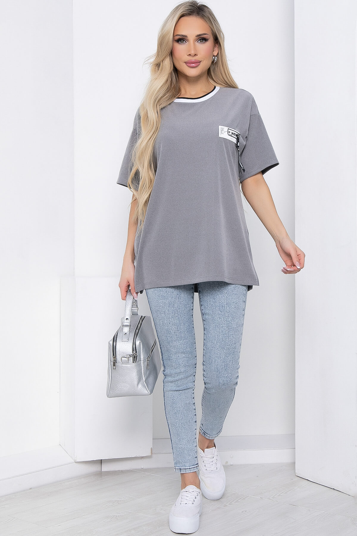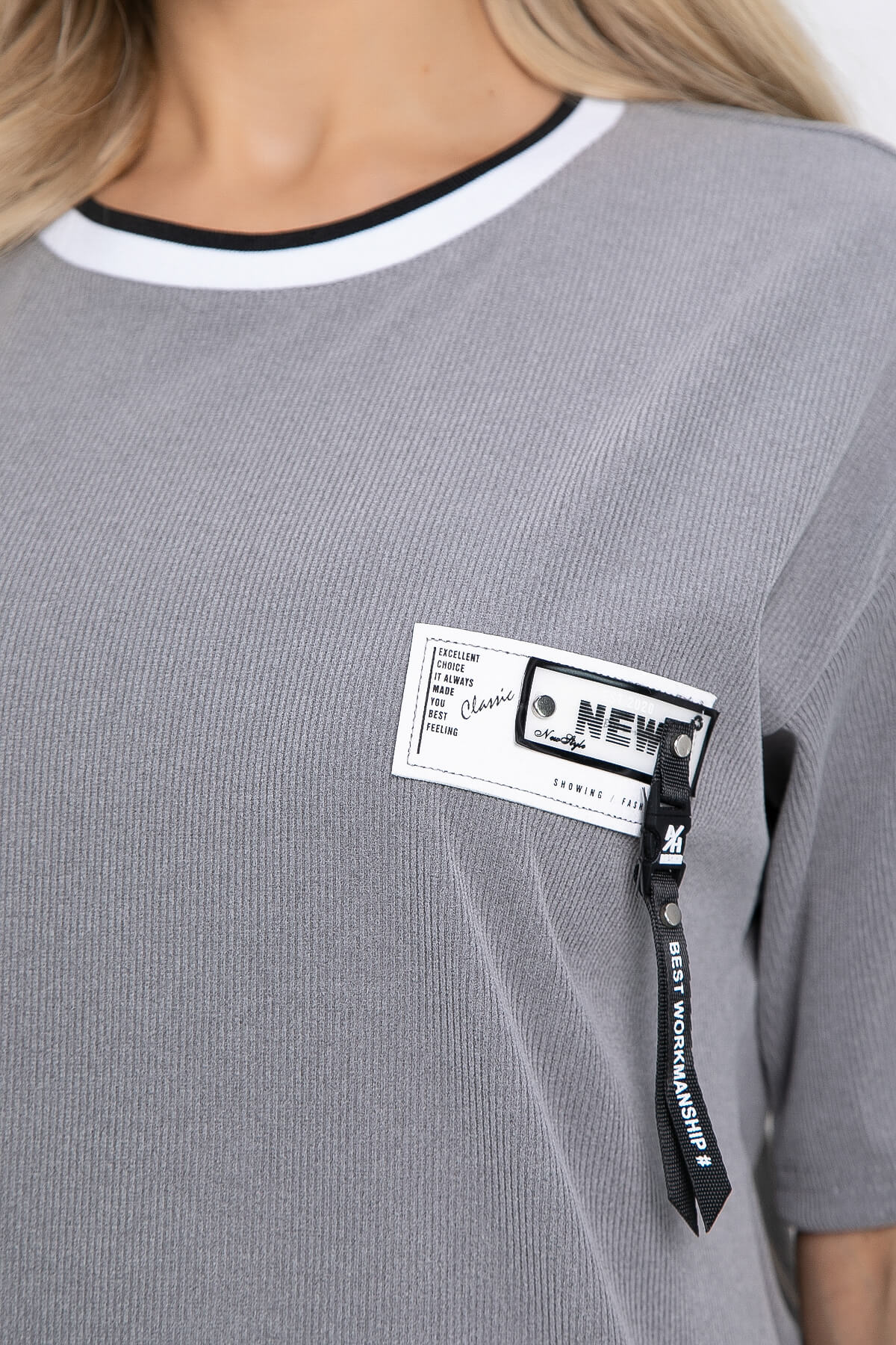Футболка из трикотажа "Лапша" идеальный вариант на каждый день! Изделие украшает нашивка спереди на груди. Рукав укороченный, со спущенным плечевым швом. Идеально смотрится с джинсами, брюками. Акцентный воротник придает особый шарм! На груди декоративная нашивка.