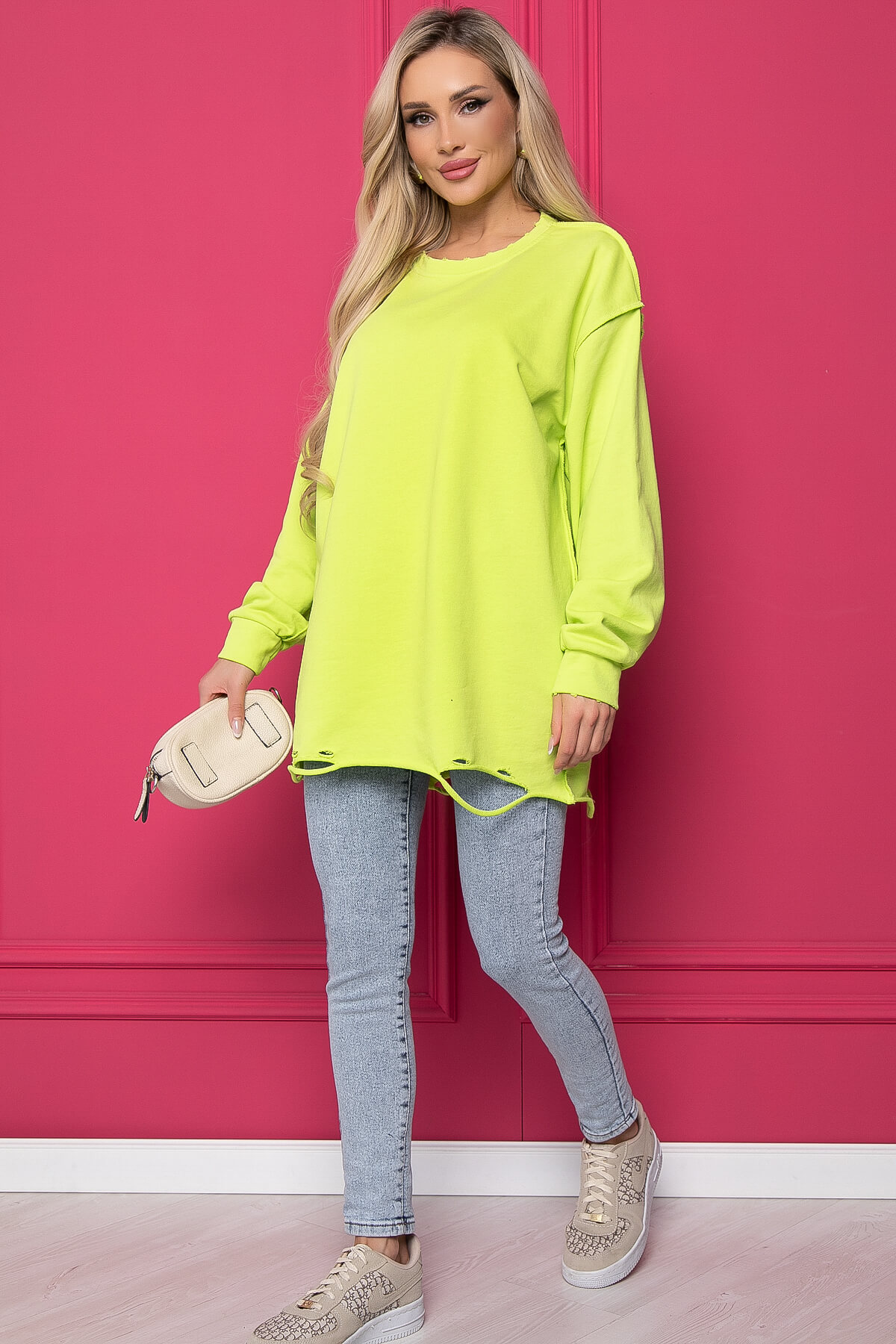 Комфортный трендовый джемпер из футера в ярком оттенке. Длинный рукав со спущенной линией плеча. Такой трикотажный джемпер отлично будет смотреться как с джинсами, так и с лосинами. Свободный крой позволит чувствовать себя уютно на прогулке, не сковывая ваших движений.