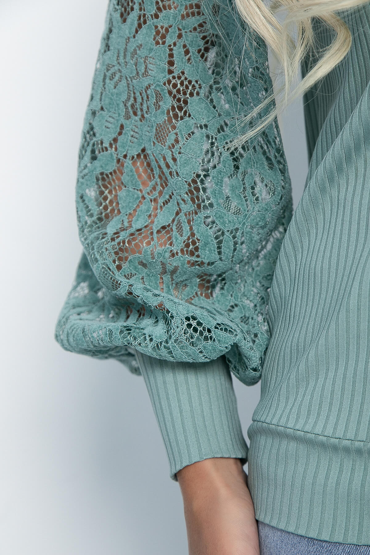 Мягкий джемпер с пышным ажурным рукавом станет фаворитом осеннего гардероба. Такая модель способна гармонично украсить любой образ. Для соблюдения баланса в силуэте к объёмному верху подбирайте ровный или зауженный низ.