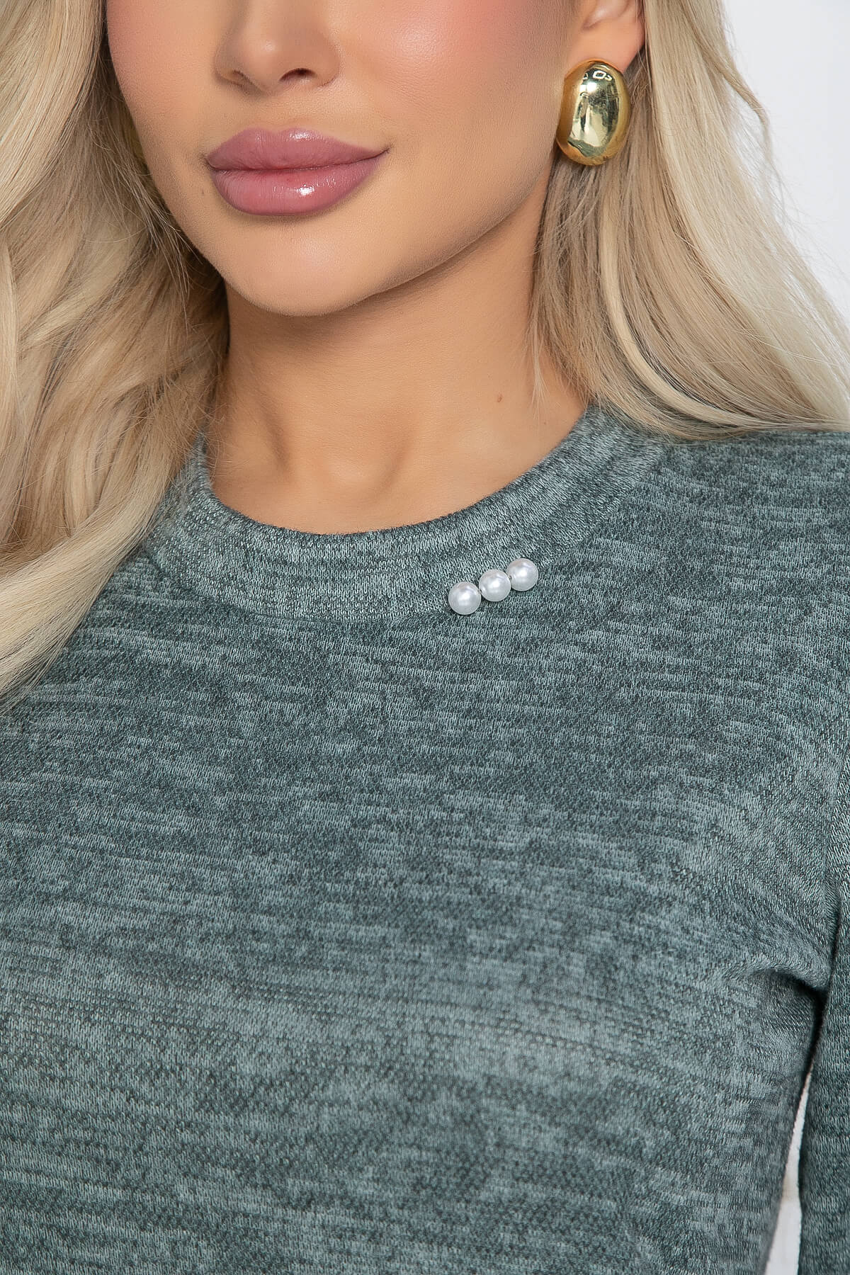 Мягкий и невероятно удобный джемпер прекрасно подойдёт для повседневного использования. Джемпер свободного кроя, с длинным рукавом. Классическая округлая горловина с декоративным элементом в виде трёх жемчужин. Благодаря своей универсальности джемпер будет легко сочетаться с различными элементами вашего гардероба.