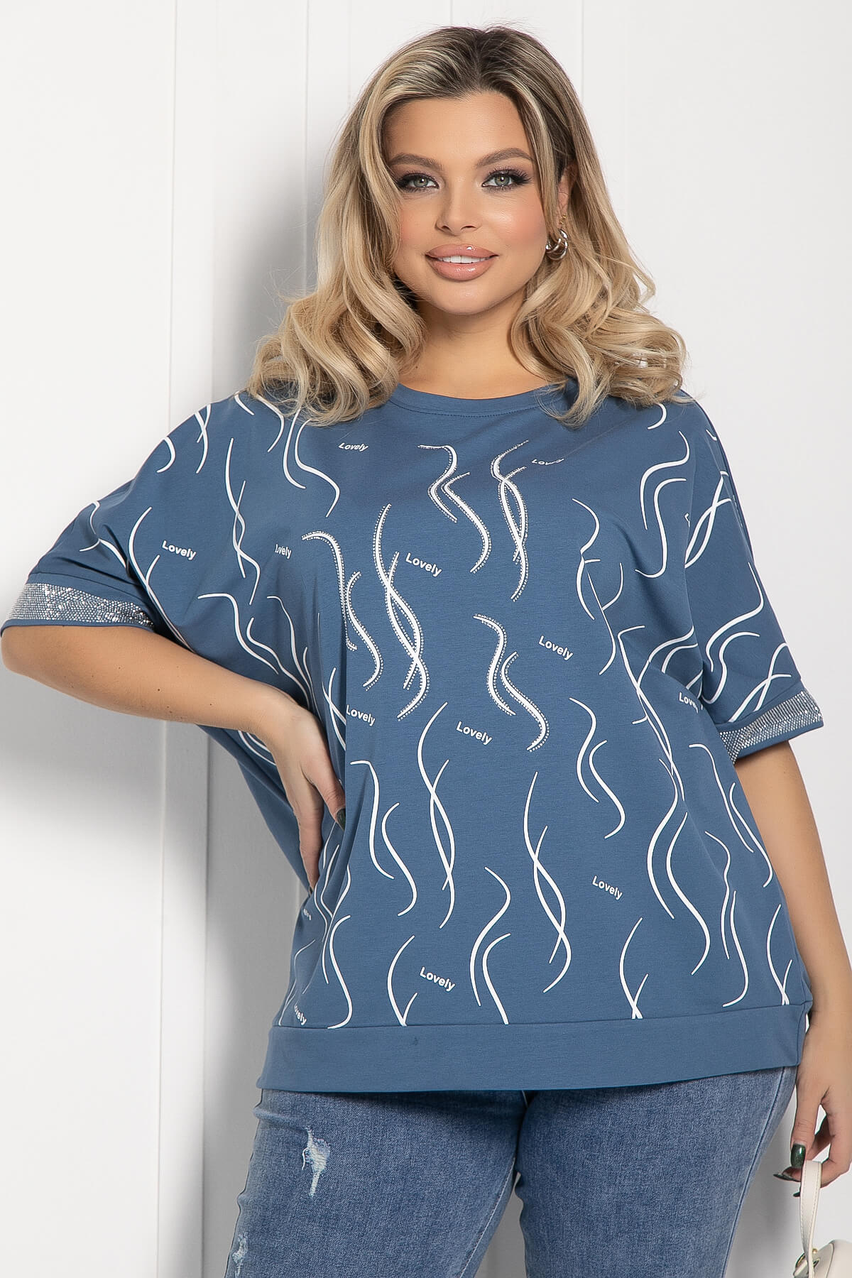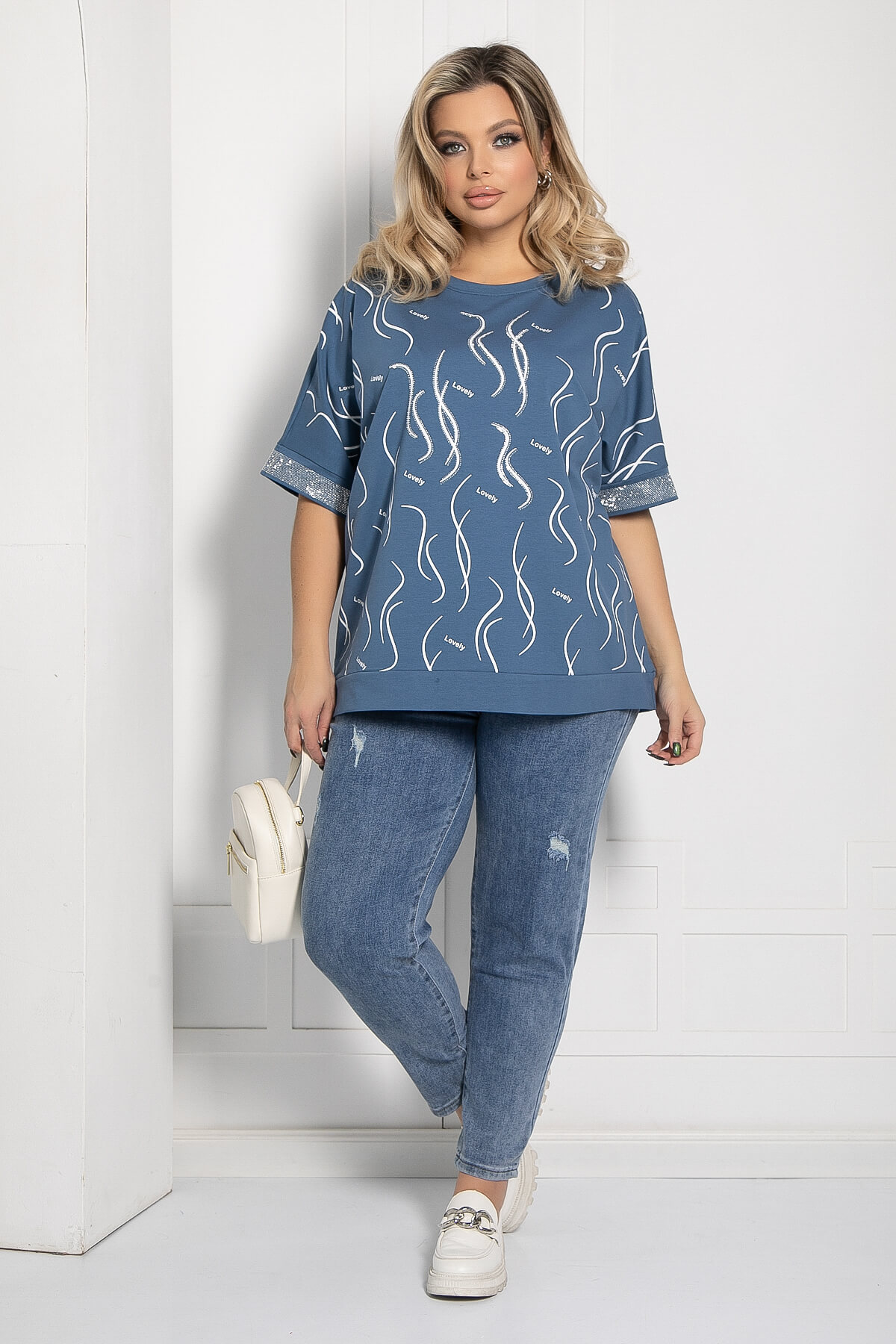Оверсайз крой этой футболки создаёт ощущение комфорта и лёгкости, позволяя чувствовать себя уверенно в течение всего дня. Футболка украшена оригинальным принтом и дополнена стразами, что делает её поистине неповторимой.