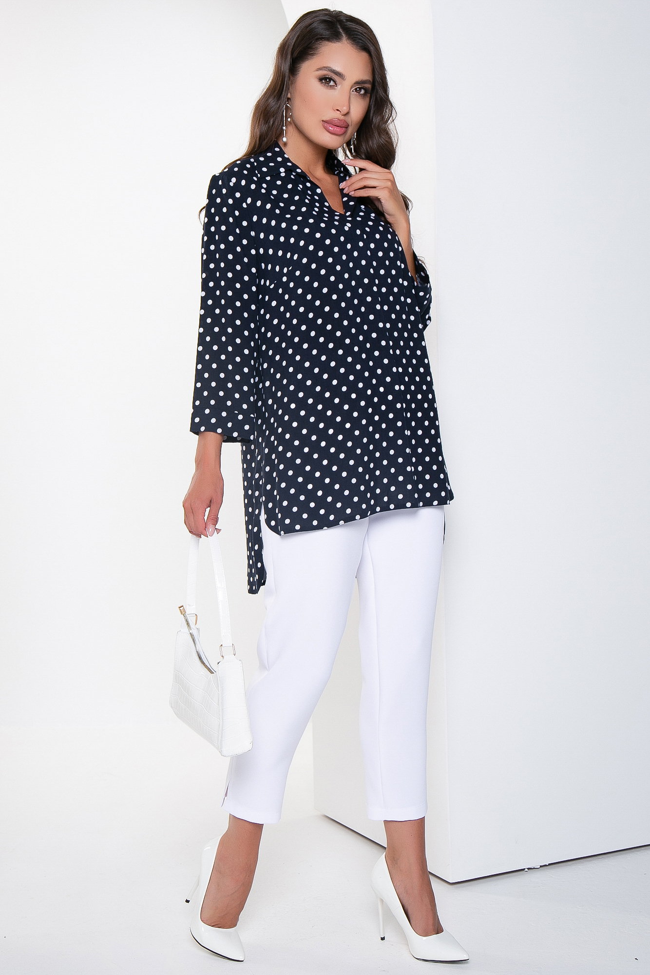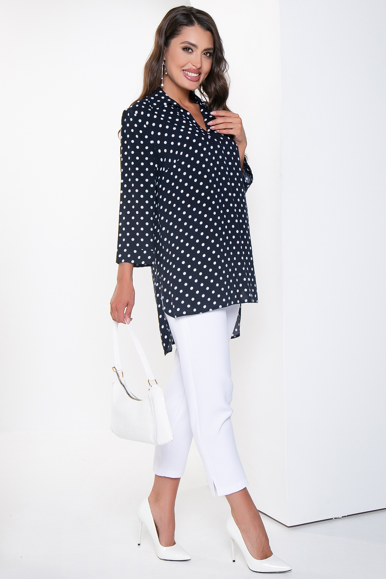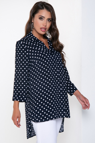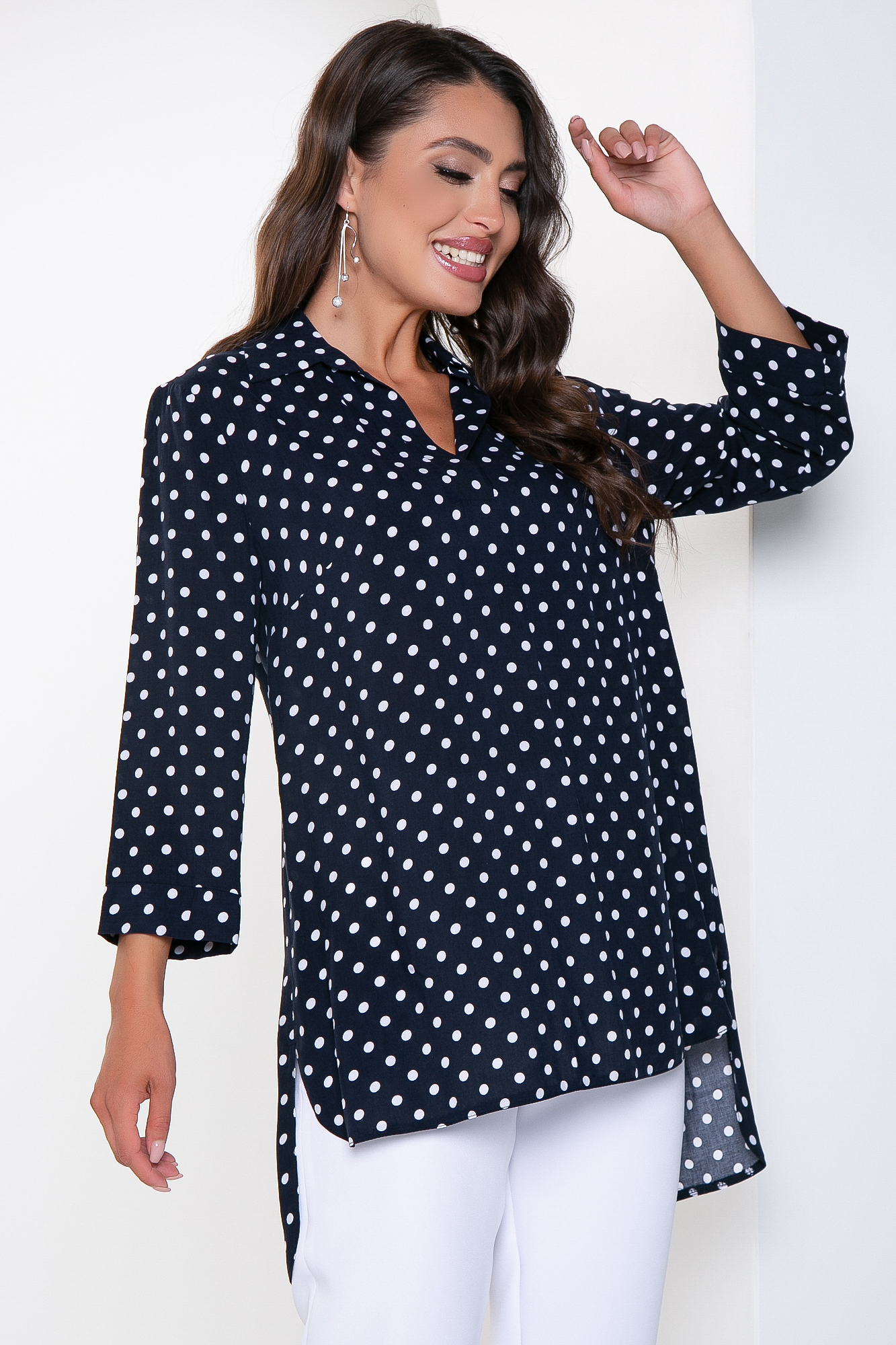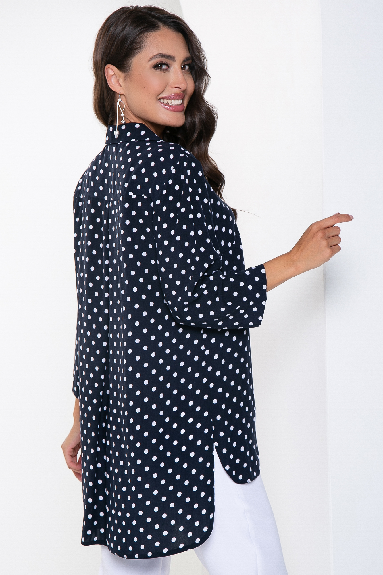 - Модная женская рубашка свободного классического кроя в оригинальный принт "горох" будет стильно комбинироваться с любым низом;