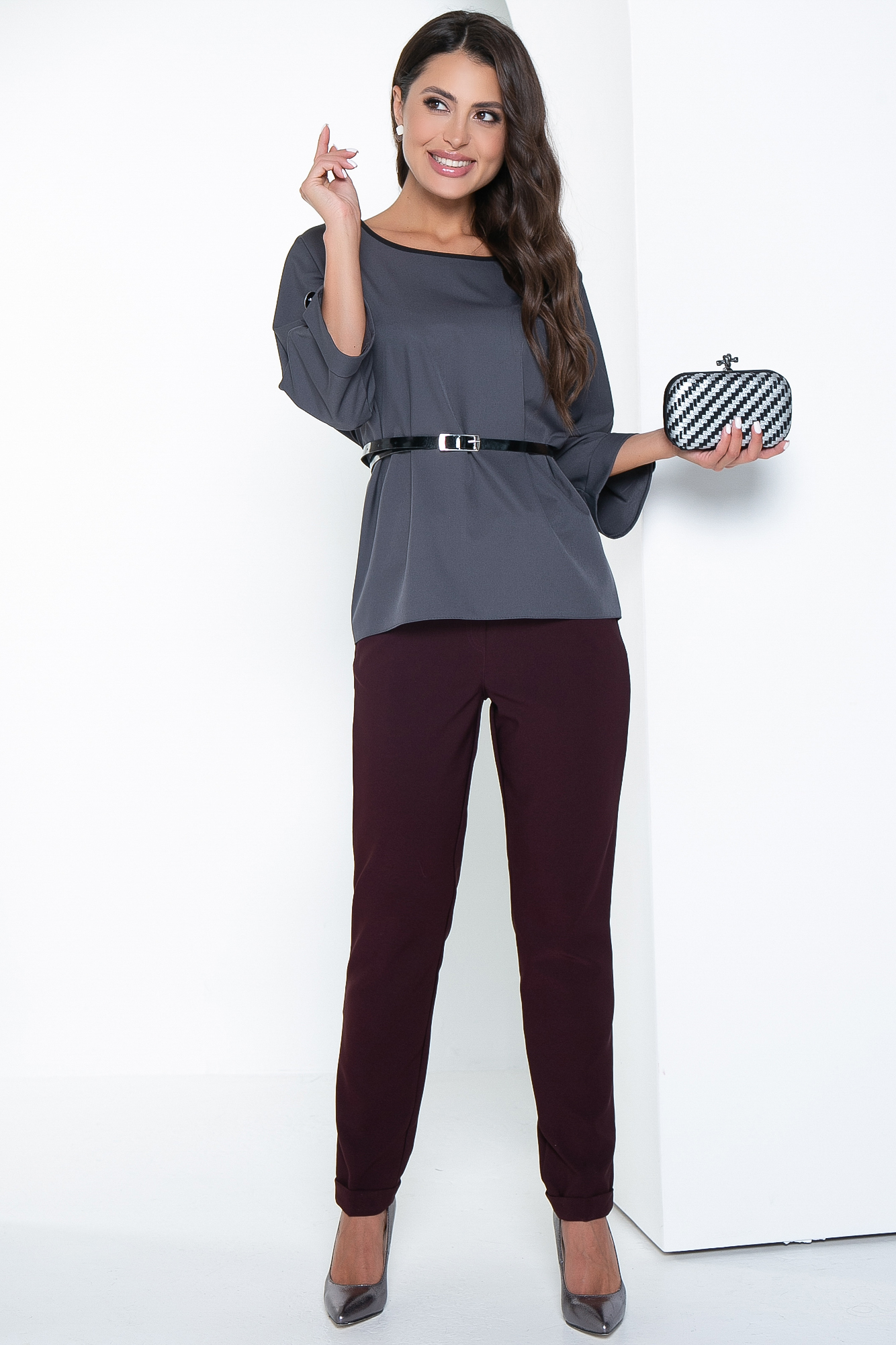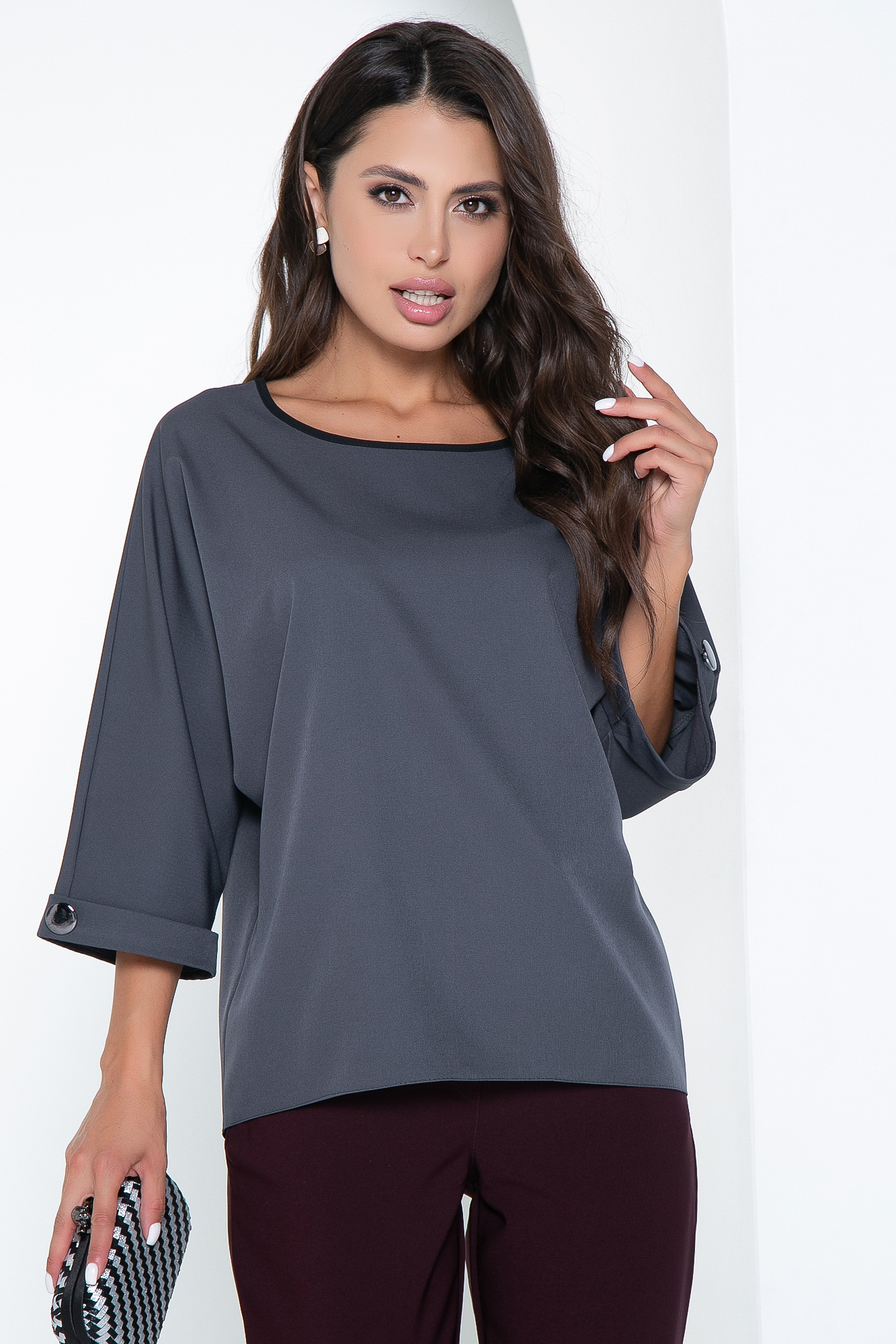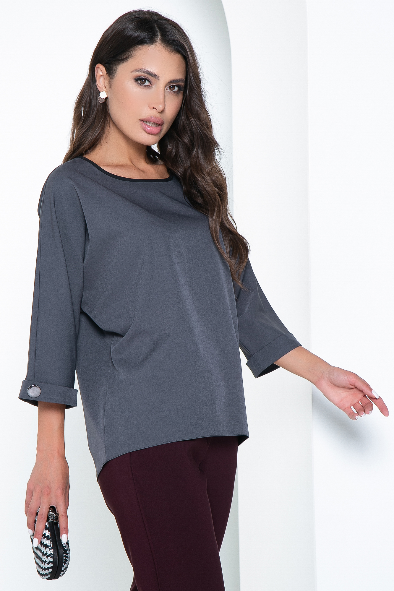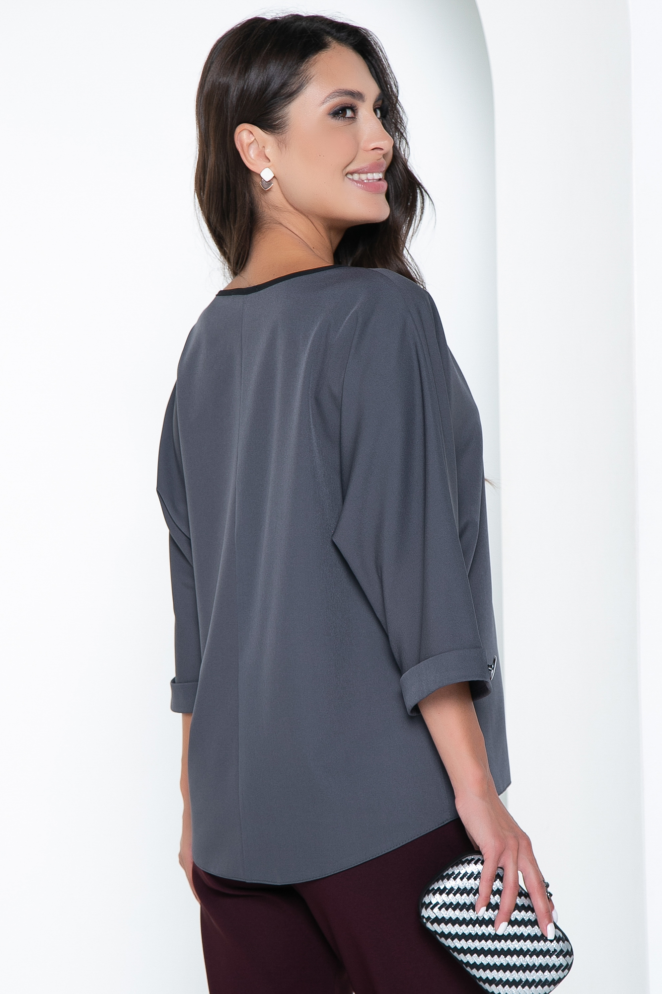 - Блуза свободного кроя, вырез горловины округлый, обработан черной окантовкой;