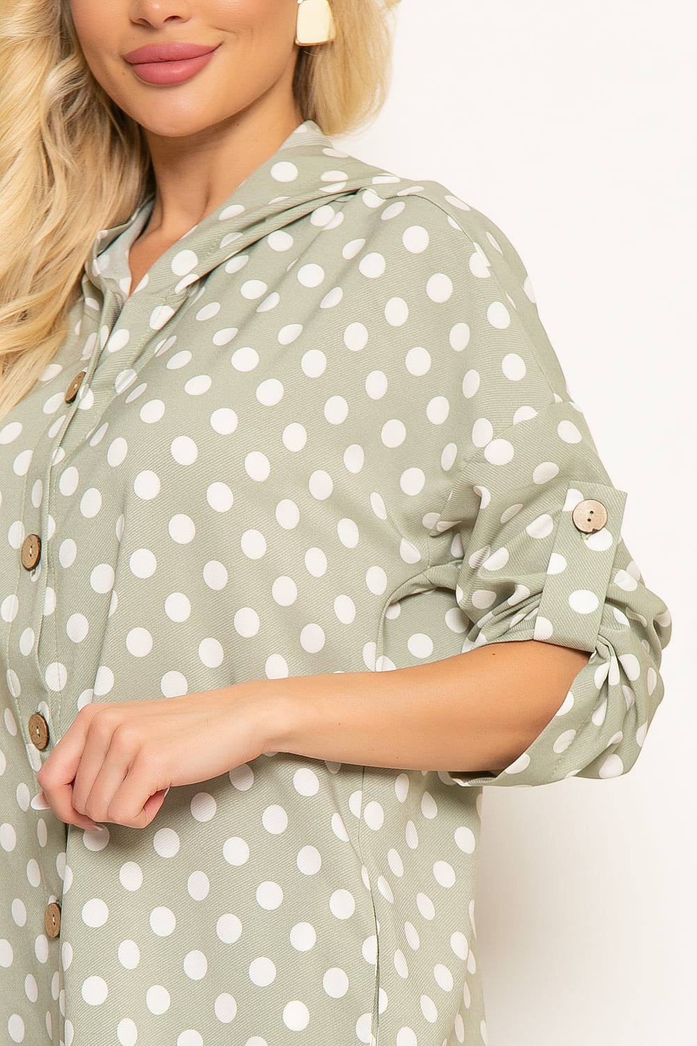 Вау! Стильная блуза с капюшоном идеально дополнит Ваш гардероб! Блуза свободного силуэта, линия плеча спущена, рукав три четвертых на пате с пуговицей. На спинке встречная складка с кокеткой. В боковых швах удобные карманы. Блуза застегивается на пуговицы по переду.
