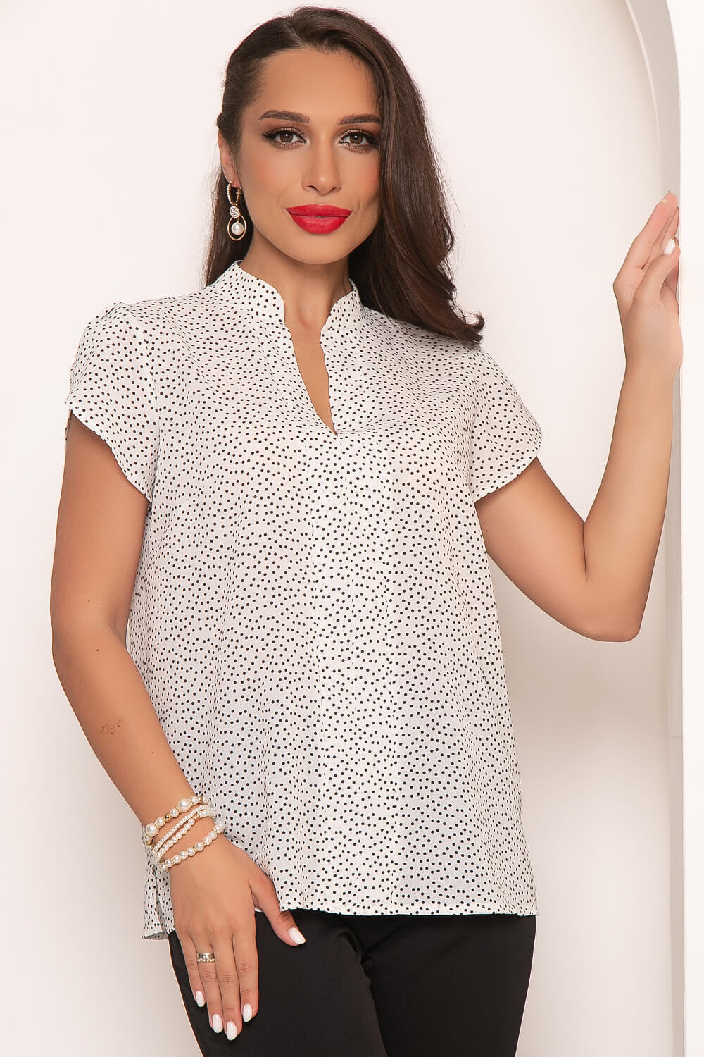 Классическая блуза в женственном исполнении - идеальный вариант для создания деловых образов. Украшением блузы является рукав, напоминающий по виду бутон цветка. Блуза прямого кроя, горловина оформлена стойкой. Рукав втачной, короткий. По боковым швам небольшие разрезы, низ ровный.