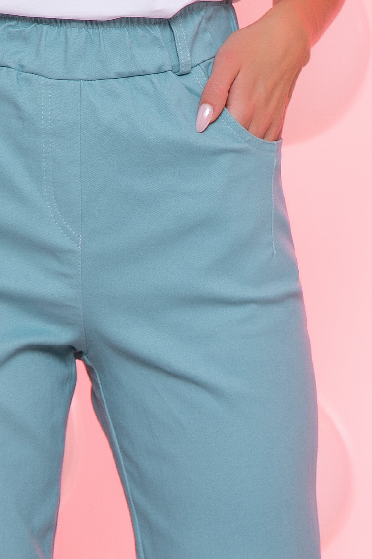 Джинсовые брюки прямого кроя на резинке. Идеально сочетаются с блузами, джемперами и жакетами базовых оттенков. Притачной пояс брюк обеспечивает идеальную посадку. В боковых швах есть карманы.