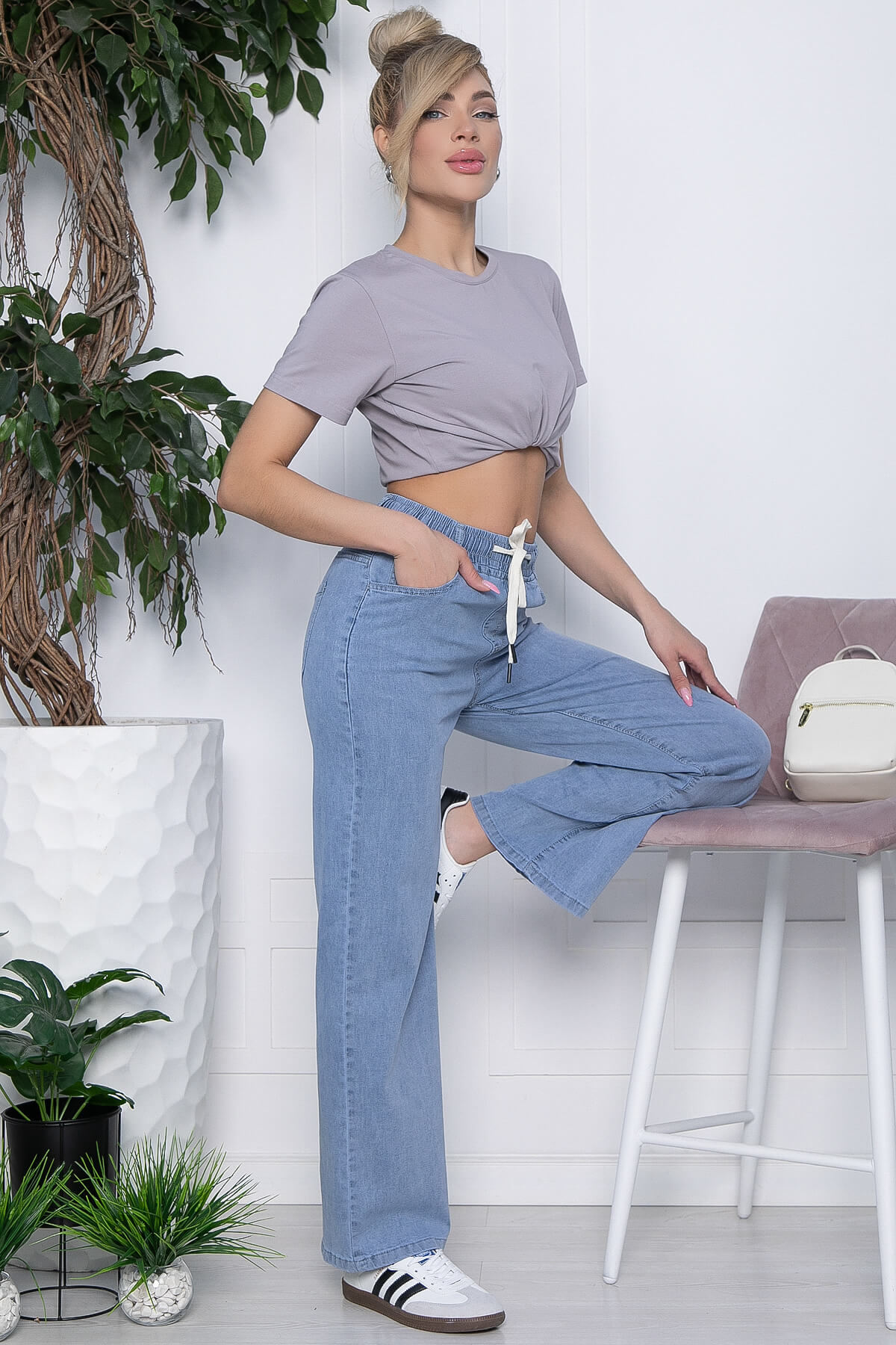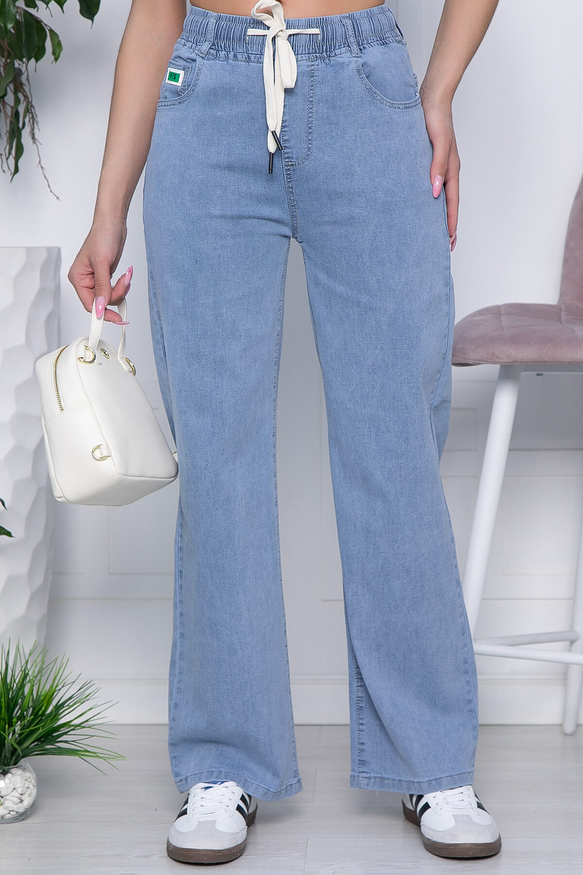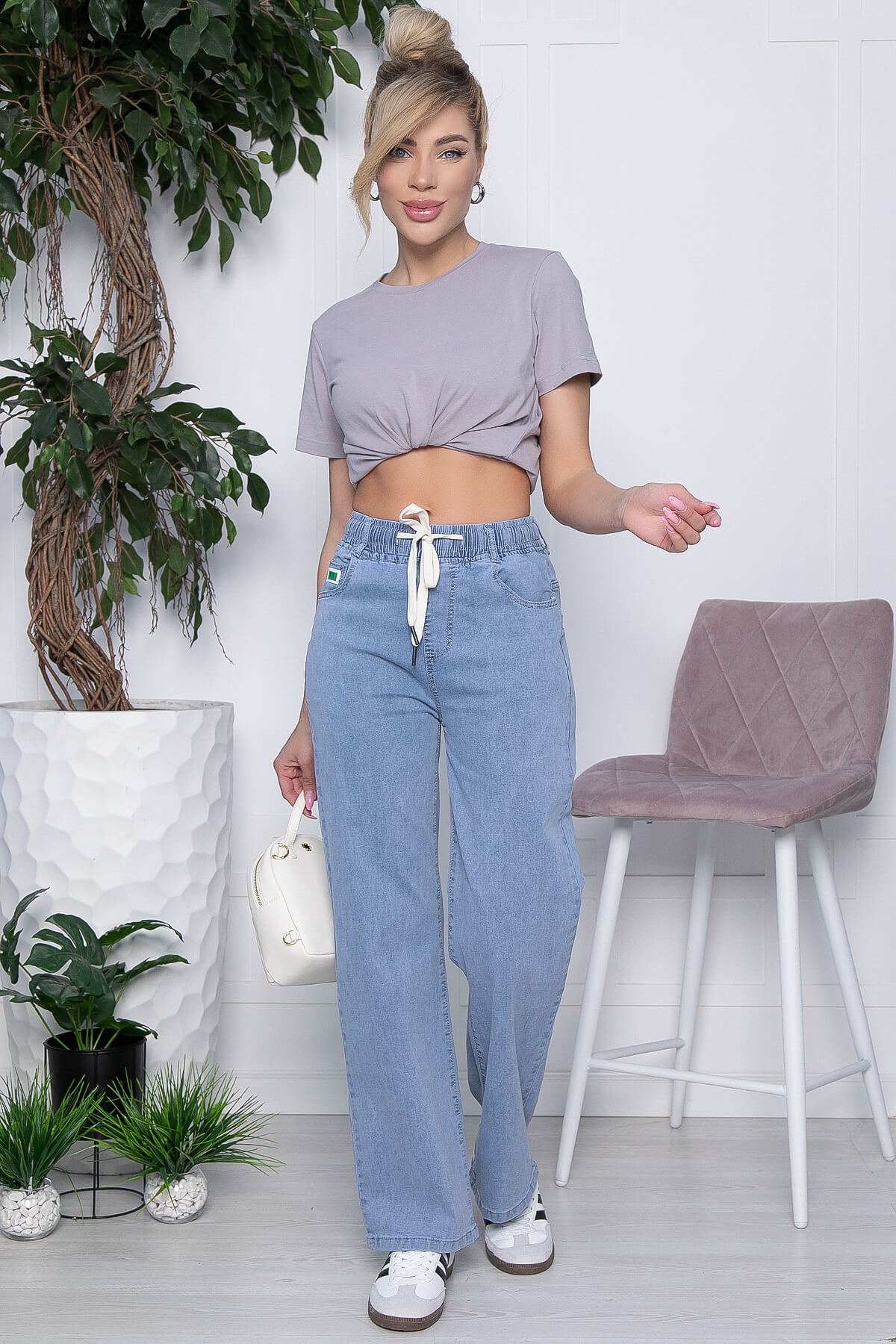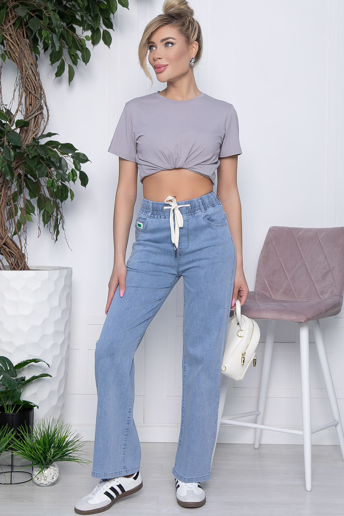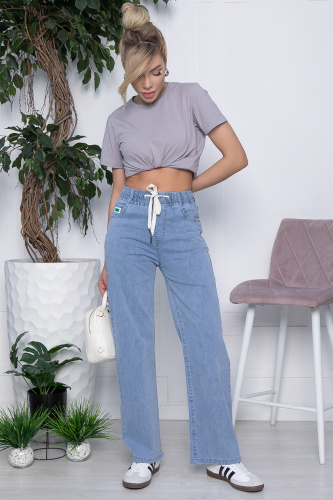 Такие джинсы подойдут любому типу фигур и грамотно скорректируют и сбалансируют каждую из них. Комфортная длина сочетаются вообще со всеми предметами гардероба: майки, футболки, топы, дизайнерские блузки, базовые рубашки, уютные свитера и джемперочки, жакеты и кожаные куртки, конверсы, ботильоны, туфли, босоножки и многое другое! Карманы в боковых швах и на задней части изделия. Талия на резинке, дополнена акцентной шнуровкой. Джинсы хорошо тянутся.