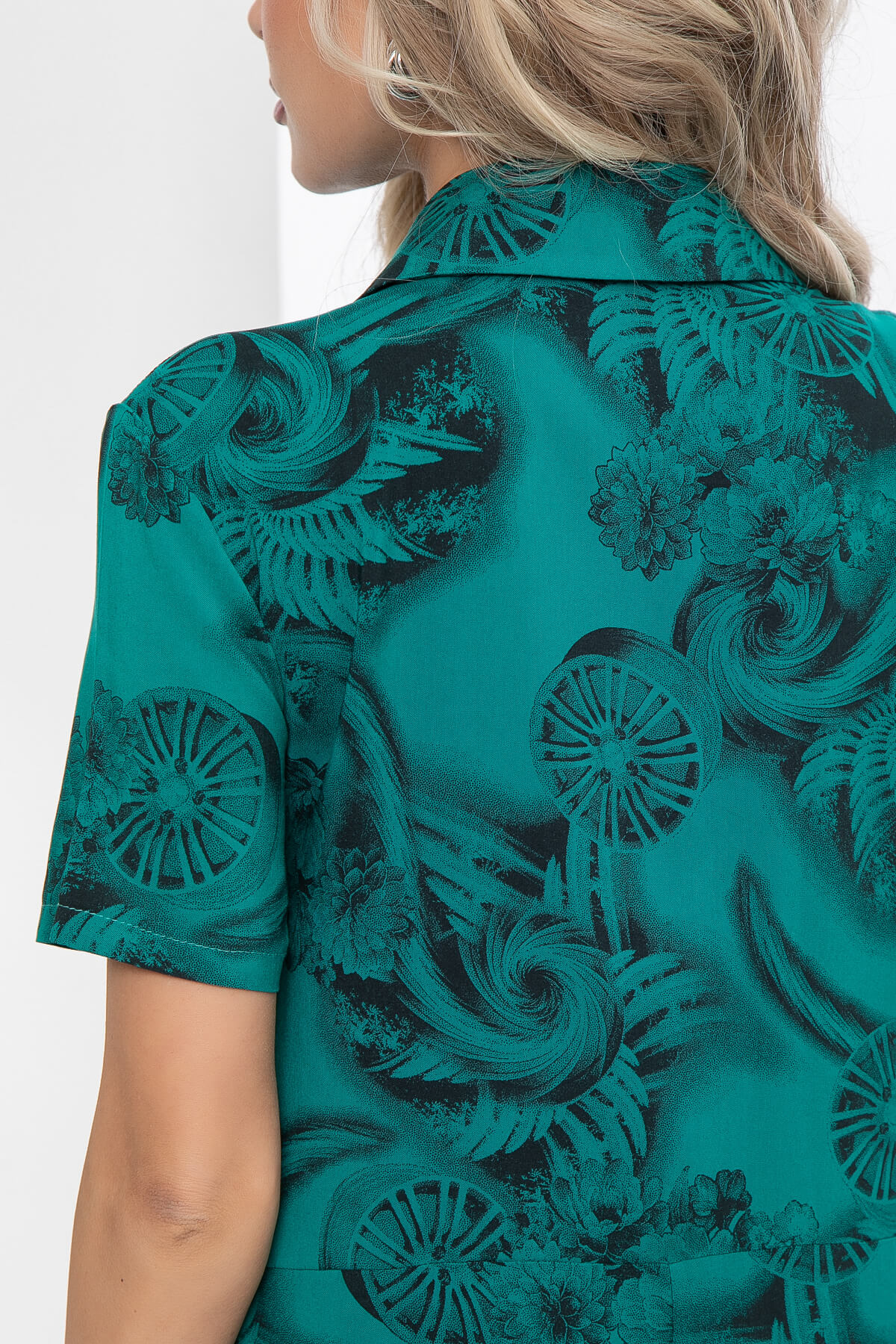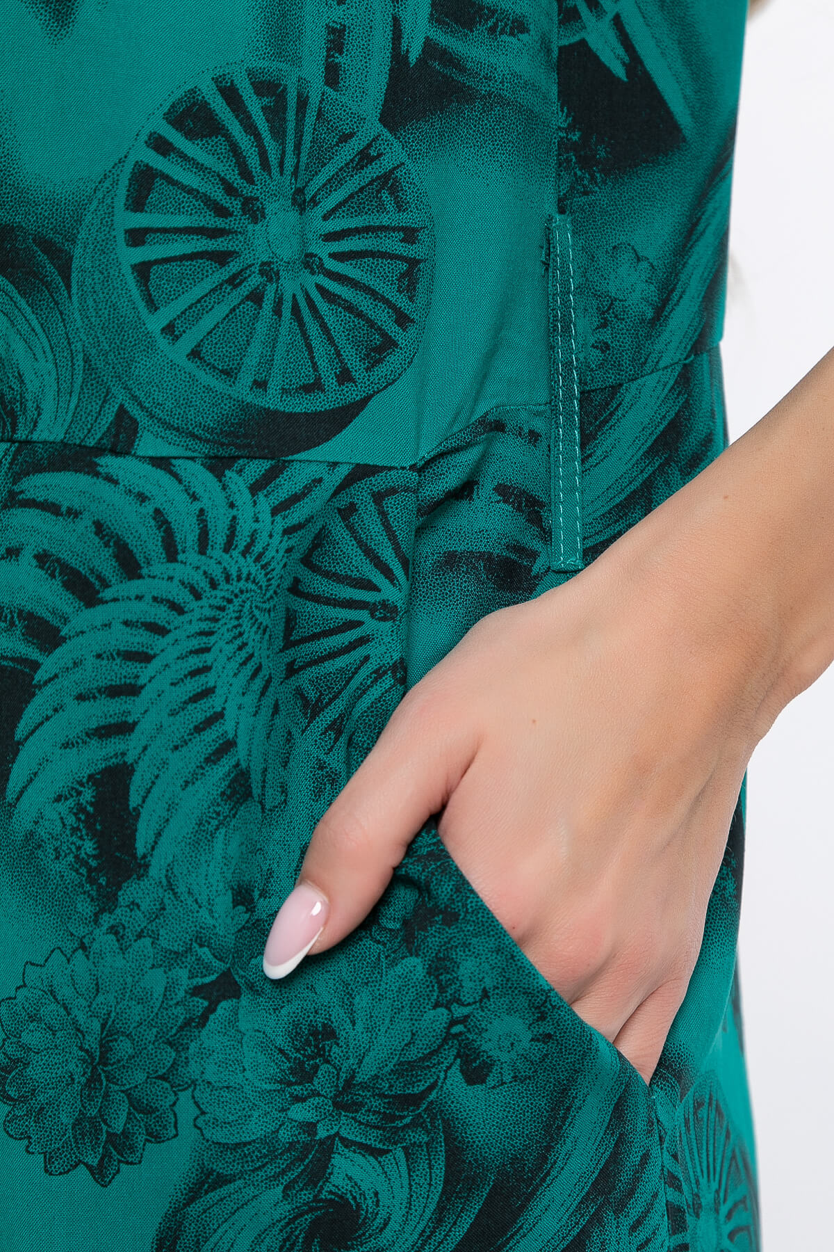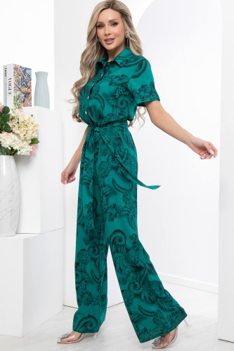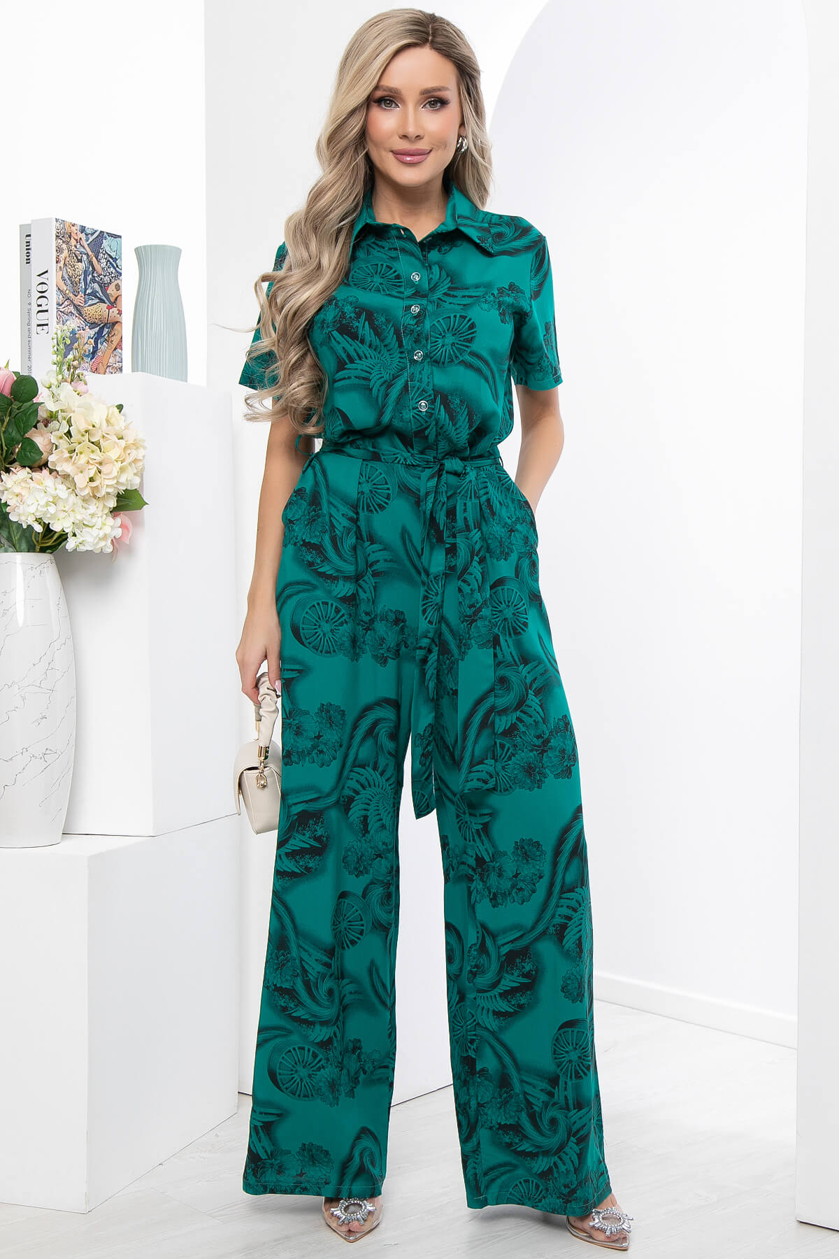 Комбинезон из лёгкой ткани в красивом изумрудном оттенке идеально подойдёт для летнего расслабленного образа. Свободный крой не сковывает движений и дарит комфорт. Рукав укороченный со спущенным плечевым швом.