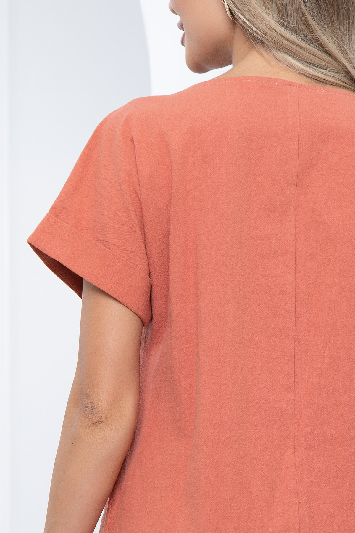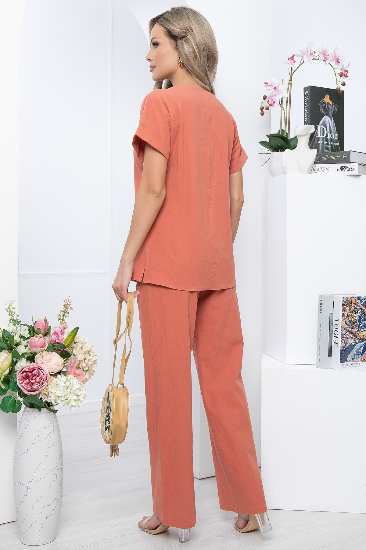 Костюм из хлопка, простой в своём исполнении, обладает особым шармом. Прямые брюки, свободного кроя верх, невероятно привлекательный цвет создают тот самый гармоничный образ стильной леди большого города. Брюки на резинке, есть карманы. Блуза свободного кроя, рукав цельнокроенный, короткий, с отворотом. В комплекте пояс из основной ткани.