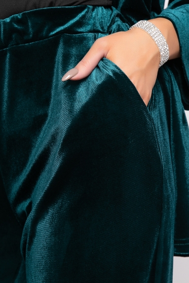 Роскошный бархатный костюм в стильном оттенке. Богемный лоск этой новинки просто сводит с ума! Шикарные брюки с высокой посадкой не просто идеально смотрятся на фигуре, но и создают полное ощущение комфорта благодаря своему крою и мягкости материала. Рукав втачной, три четверти. В комплект входит пояс из атласа.