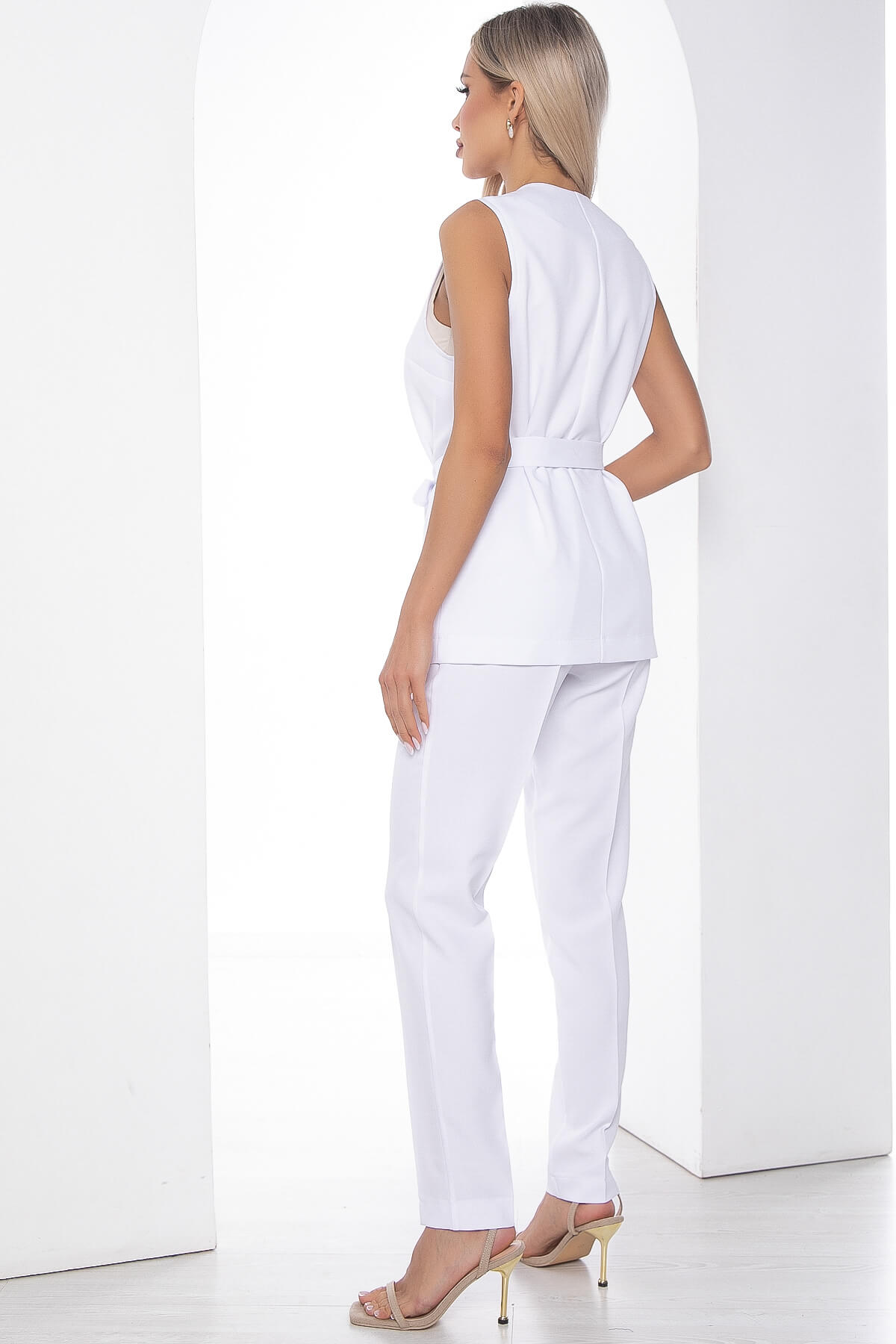 Стильный костюм-двойка, состоящий из классических брюк прямого кроя и жилета. Идеальный выбор для повседневного или делового образа. Дополняйте его акцентными блузами или водолазками, что позволит создать даже праздничный наряд. В комплект входит пояс из основной ткани, который позволит подчеркнуть линию талии.