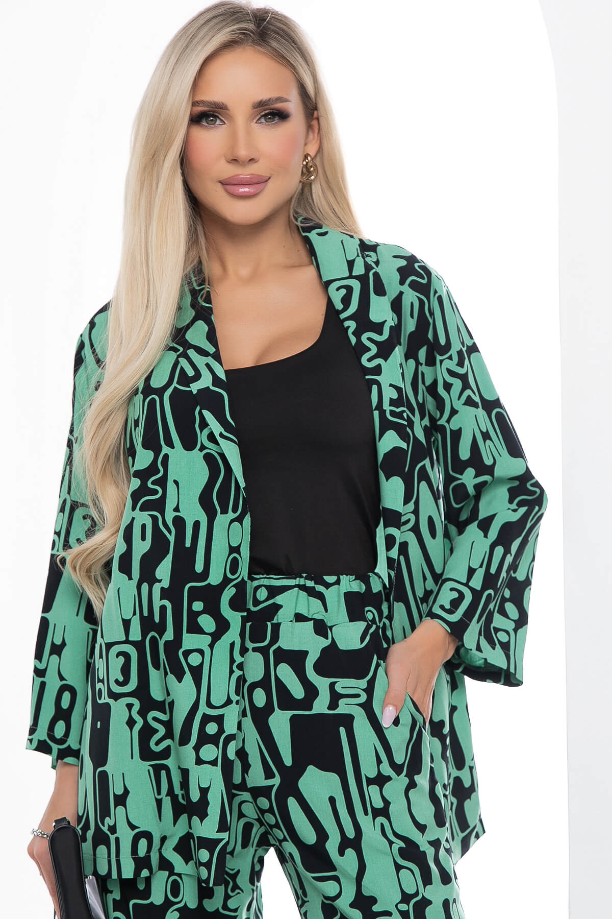 Костюм из лёгкой ткани идеально подойдёт для летнего расслабленного образа. Свободный крой не сковывает движений и дарит комфорт. Рукав три четверти, со спущенным плечевым швом. В комплект входит пояс из основной ткани, который позволит подчеркнуть преимущества фигуры.