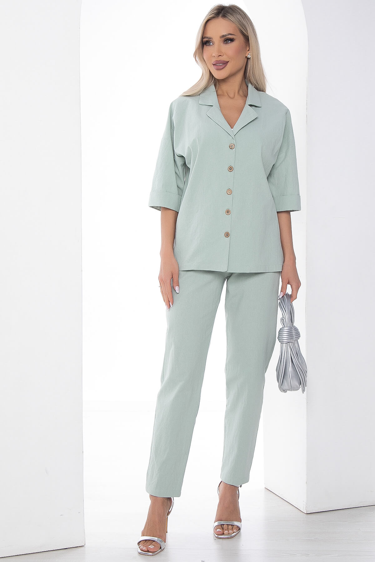 Летний брючный костюм из легкой ткани – один из лучших вариантов в жаркую погоду! В нём вы будете себя чувствовать уверенно и комфортно. Можно носить совместно так и раздельно. Этот брючный костюм подойдет как для дома, так и для выхода на пляж или вечернее мероприятие. Жакет свободного кроя на пуговицах, рукав 3/4 спущенный на манжете. Брюки полуприлегающего силуэта на резинке, есть карманы.