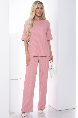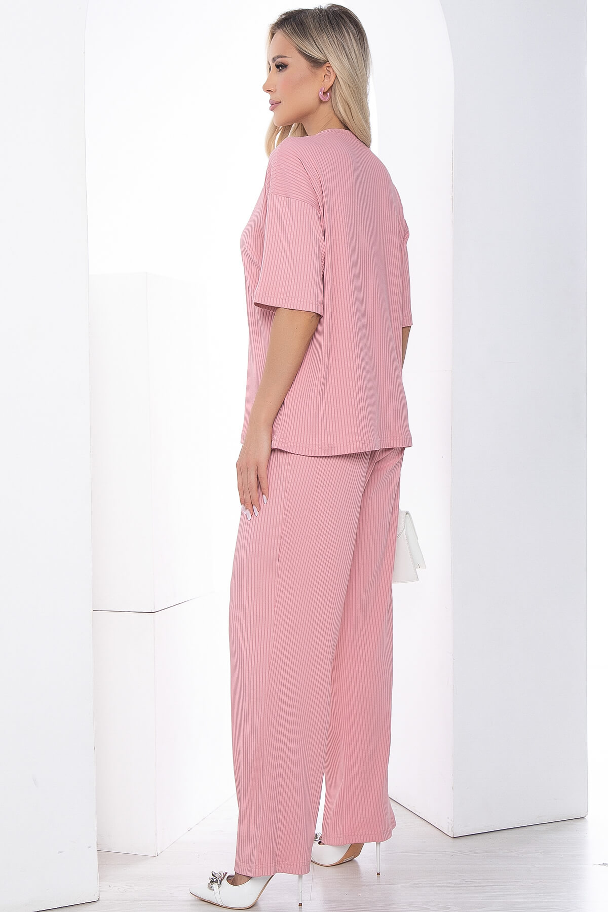 Легкий костюм, состоящий из брюк с высокой посадкой на резинке и футболки свободного кроя. Костюм подходит для повседневного использования, прогулок в летнюю погоду. Свободный крой позволяет чувствовать себя комфортно, прекрасно сочетается с обувью на плоской подошве и каблучке. В прохладные дни костюм можно дополнить джинсовой курткой.