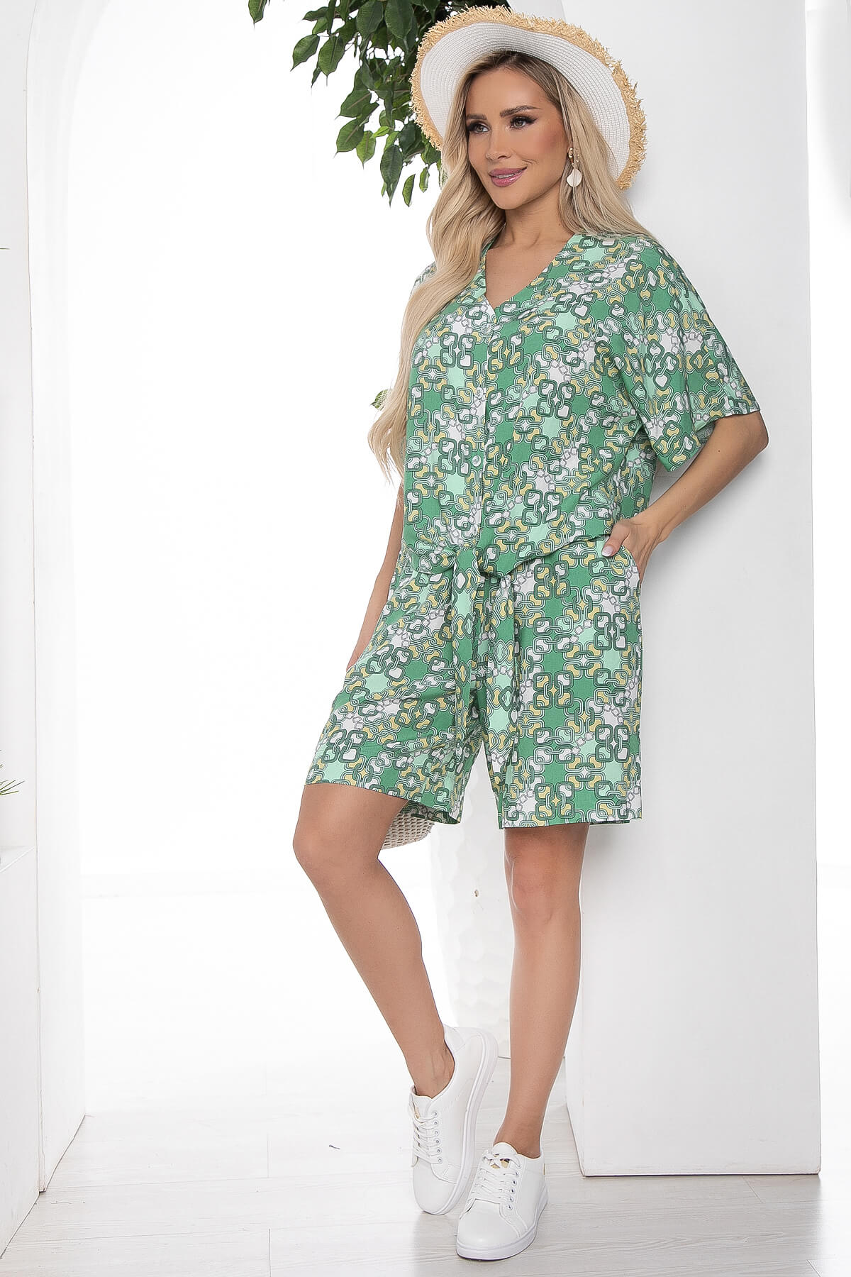 Идеальный тренд для тех, кто всегда в поисках стильных и модных, а главное, удобных образов на лето! На пике популярности в этом сезоне комплект из свободной рубашки и прямых шорт. Рубашка свободного кроя на пуговицах с акцентными завязками по низу. Рукав укороченный, цельнокроеный. Шорты классические на резинке, есть карманы.