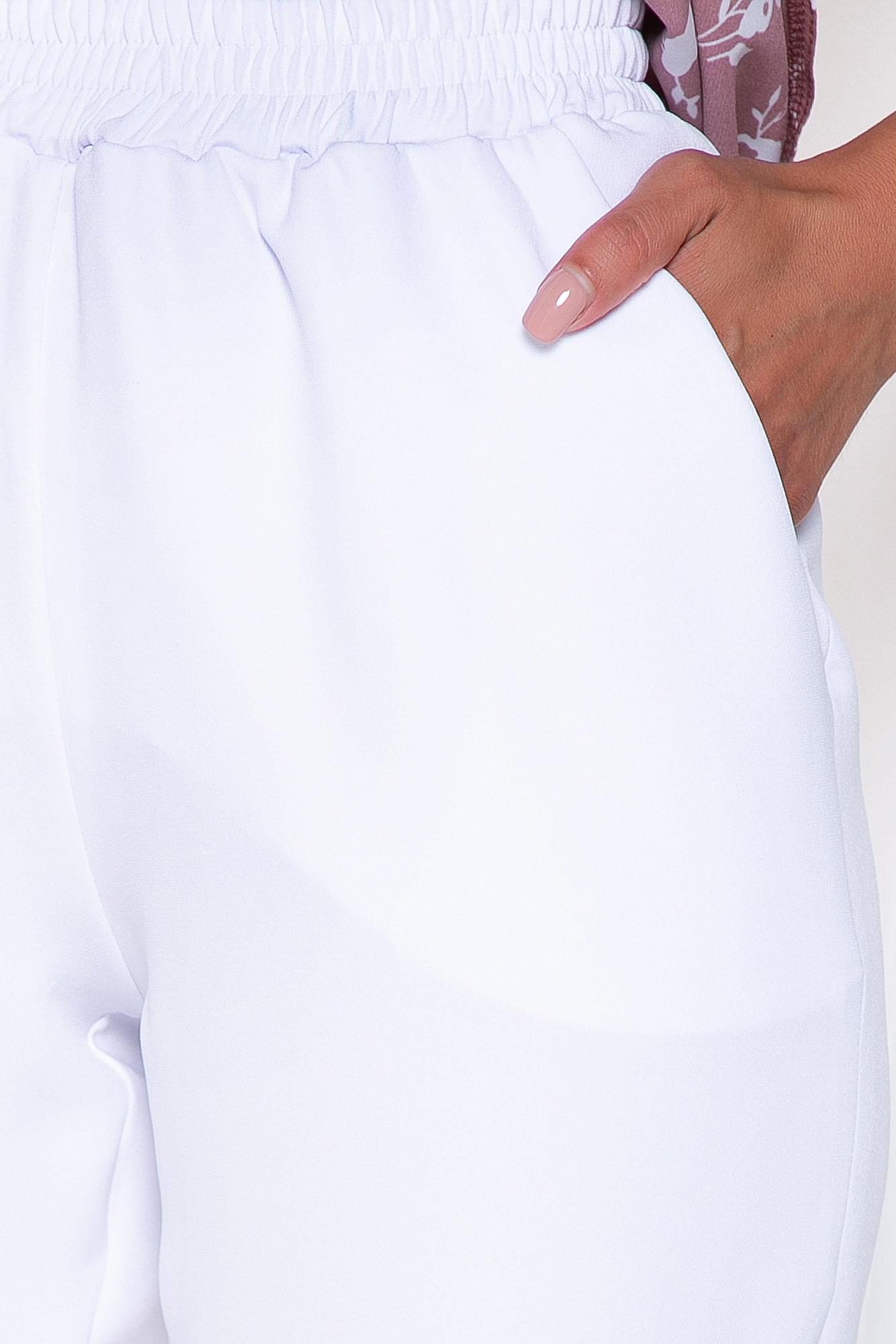 - Укороченные брюки из костюмной ткани, талия на эластичной резинке, прямого кроя.