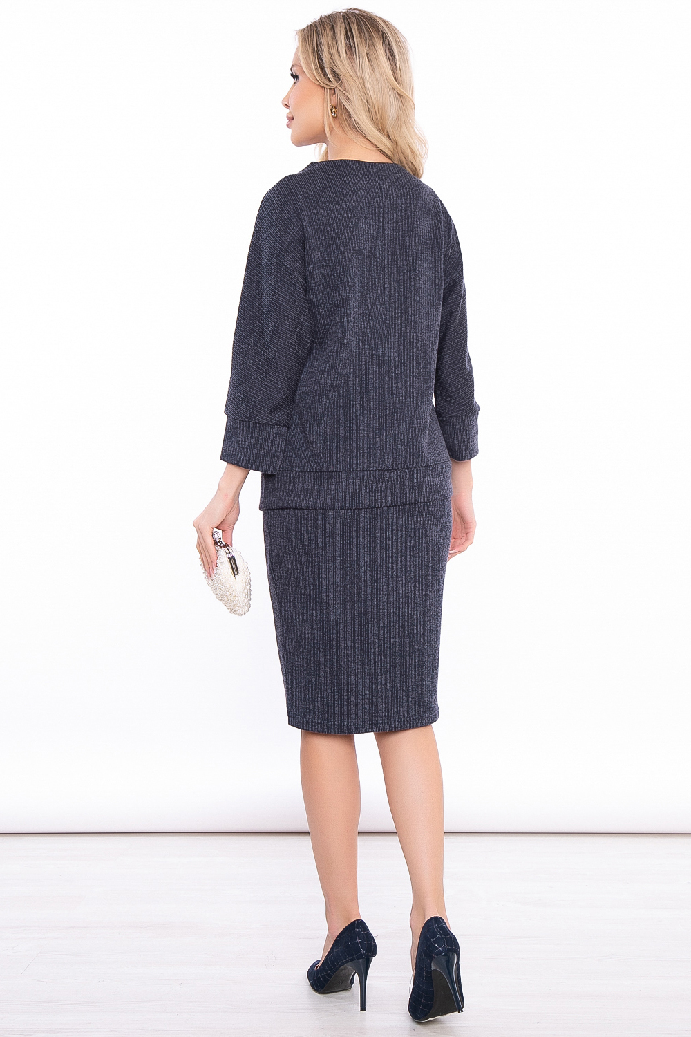 - Уютный трикотажный костюм состоит из джемпера и юбки-карандаш;