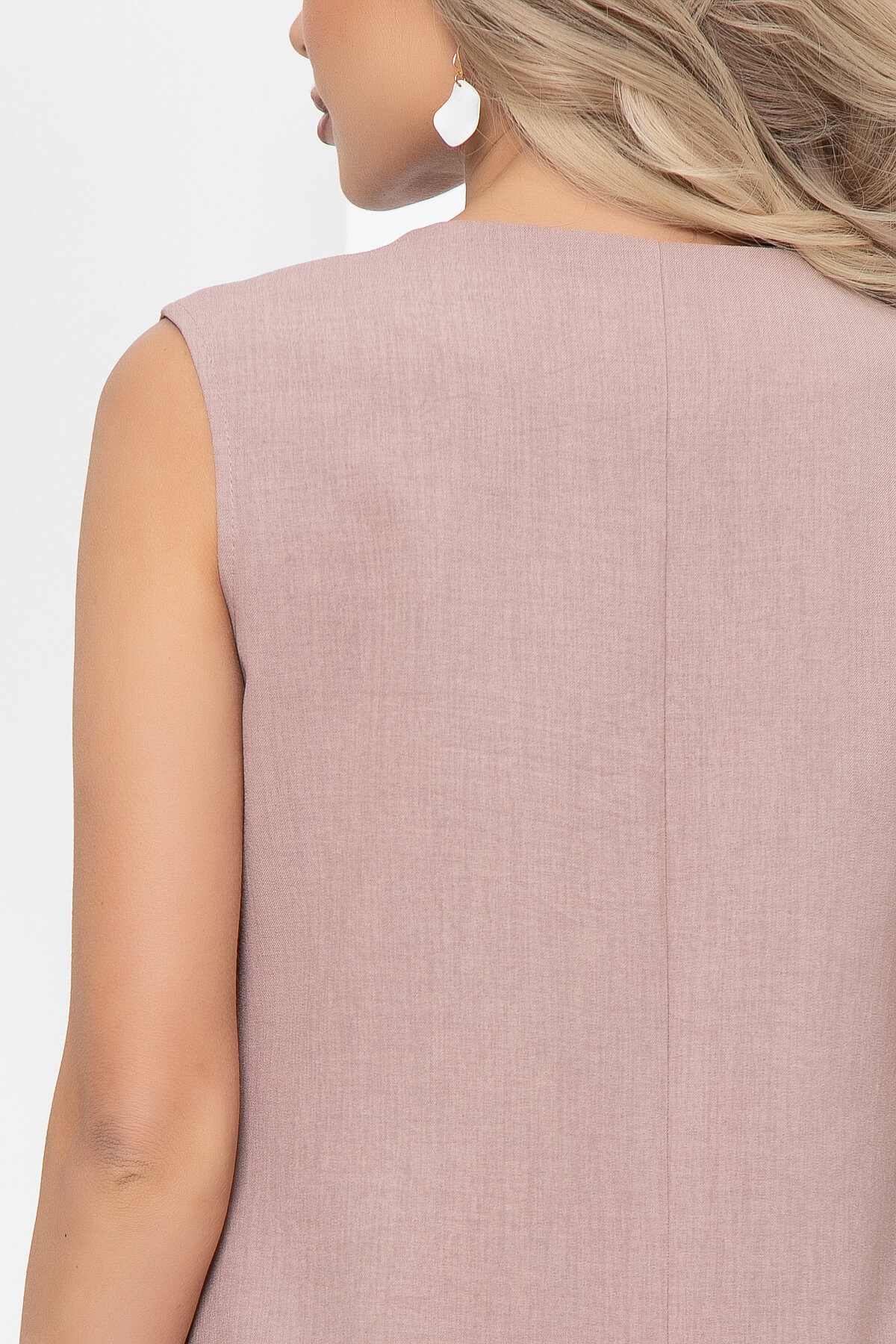 Стильное платье нежного оттенка неприхотливо в уходе и выборе аксессуаров, но при этом является самодостаточным элементом образа. Платье без рукава.По бокам юбки разрезы, что добавит вашему образу оригинальных акцентов.