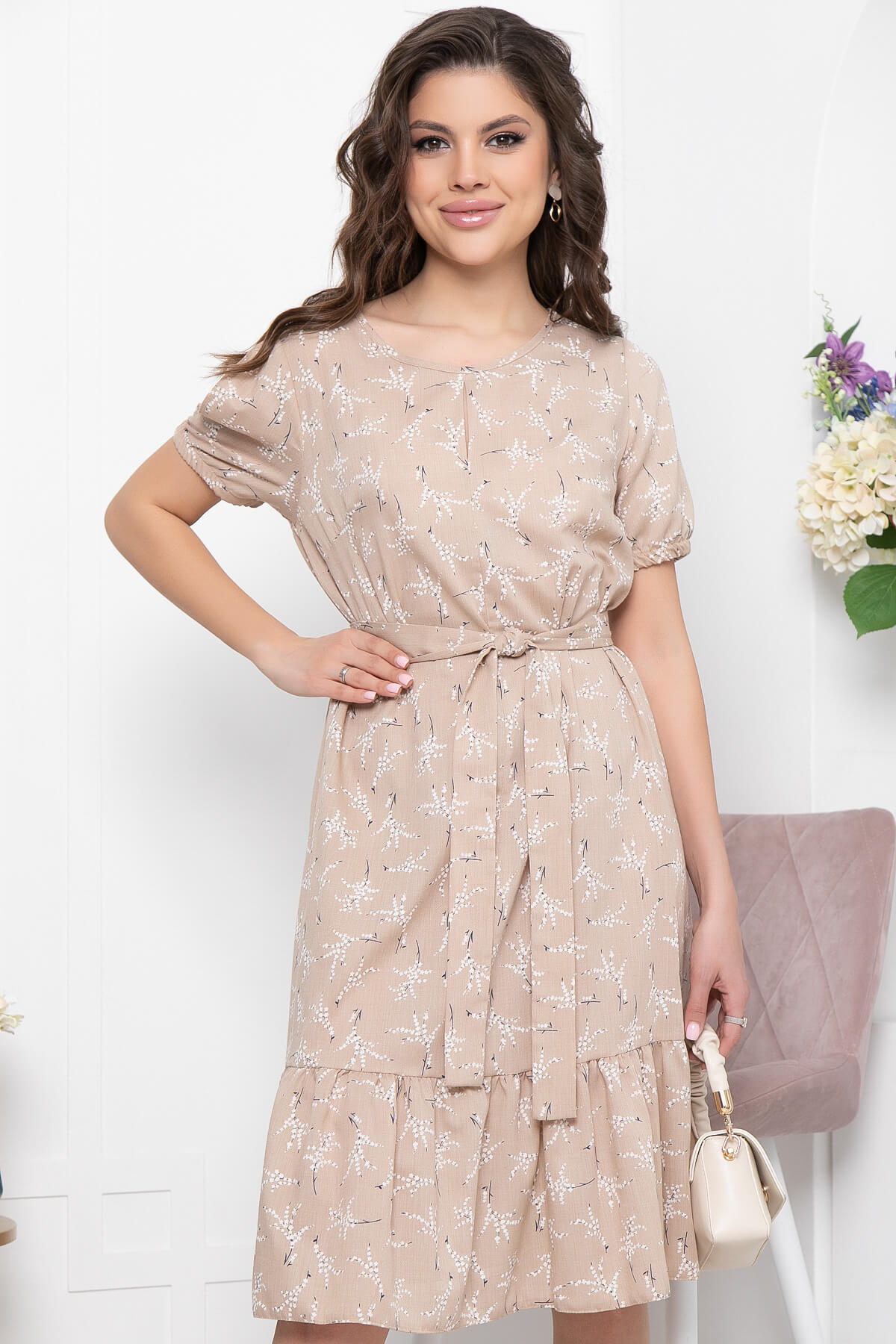 Платье свободного кроя изумительно смотрится как с каблучком, так и с кедами! Юбка с воланом по низу добавляет романтичности и воздушности образу. Рукав украшен разрезом, вырез горловины-округлый, украшен небольшим разрезом. В комплекте пояс из основной ткани.