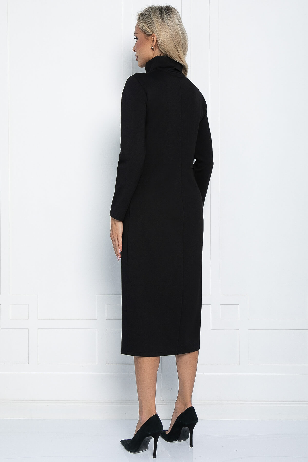 Трикотажное платье по типу водолазки подчеркнёт вашу женственность и добавит стиля вашему образу. Его отличительная черта — широкий ворот-хомут, который придаёт особый шарм. Платье украшено функциональными молниями на рукаве и спереди, что делает его ещё более оригинальным. Это платье идеально подойдёт как для повседневных выходов, так и для особенных случаев.