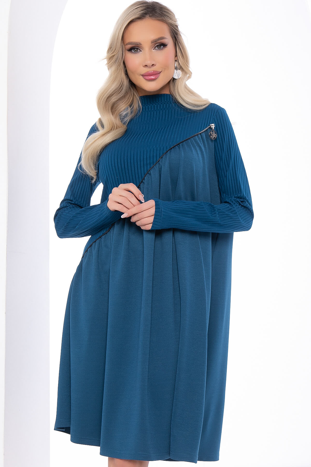 Дизайнерское платье из комбинированных тканей для ценителей комфортных и стильных образов. Платье прекрасно подойдёт в качестве повседневного варианта и будет хорошо сочетаться с туфлями, ботильонами или ботинками. Благодаря своему фасону платье прекрасно справляется с задачей скрыть недостатки фигуры и подчеркнуть достоинства.