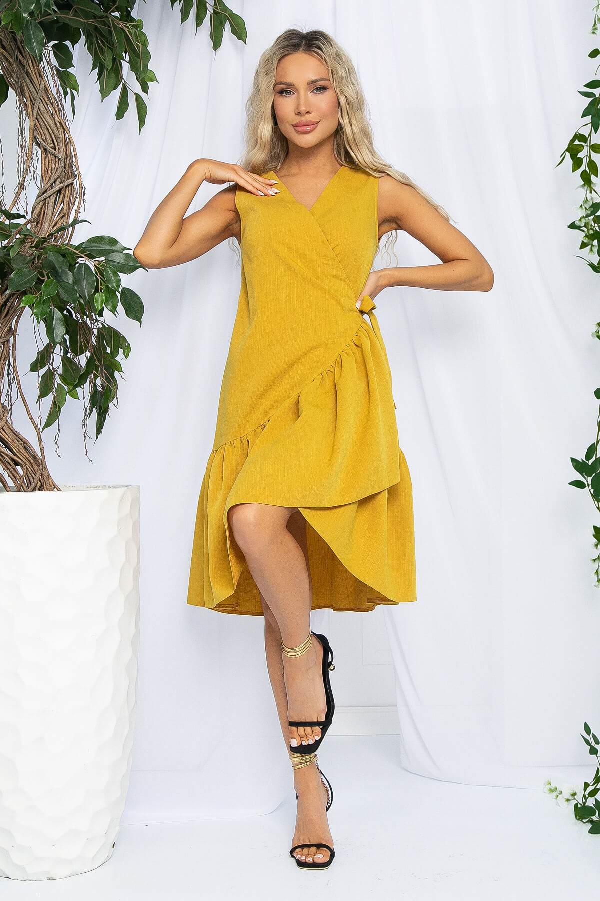 Почувствуйте летнее настроение с нашим платьем на запах! Это превосходный вариант для жарких дней, когда хочется выглядеть модно и чувствовать себя комфортно. Изысканный фасон выгодно подчёркивает фигуру, а кокетливые рюши придают платью воздушность и очарование. Носите его с любимыми босоножками или кедами для создания непринуждённого образа или дополните его туфлями на каблуке для более праздничного образа.
