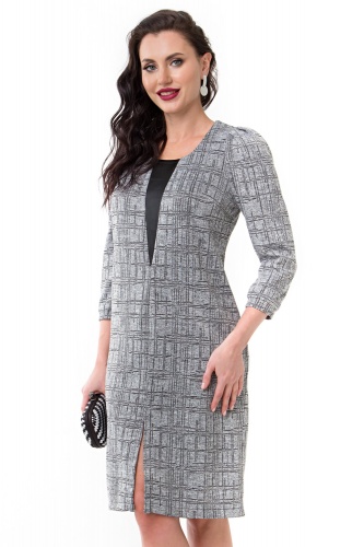 Красивое трикотажное платье полуприталенного силуэта в актуальный принт клетка;