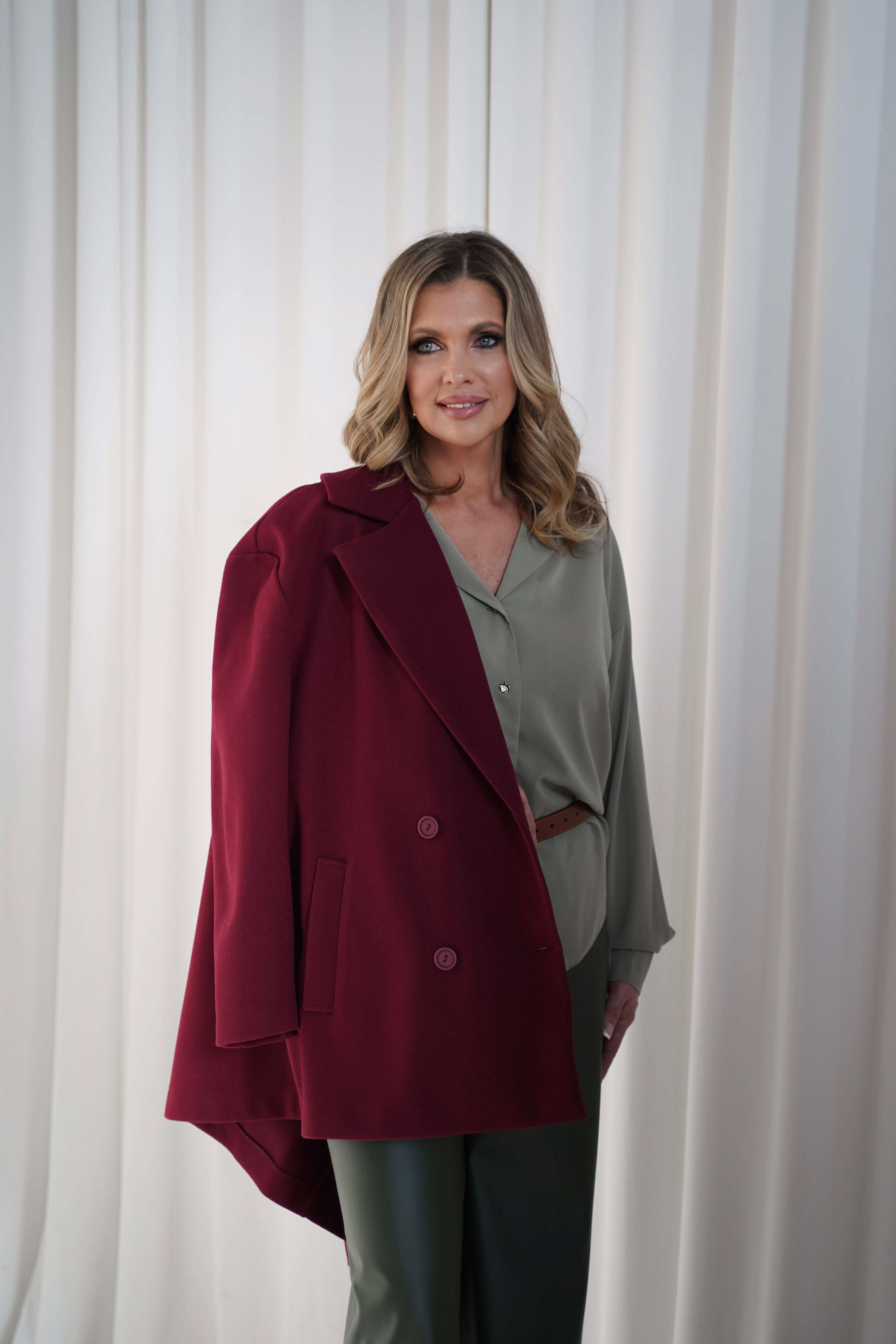 Пальто выполнено в стиле оверсайз, что обеспечивает комфорт и свободу движений. Его выразительный двубортный английский воротник придаёт образу элегантность. Это пальто станет настоящей находкой для женщин, которые ценят удобство и стиль. Его потрясающий бордовый цвет легко сочетается с самыми разнообразными вещами и необычными аксессуарами. Однако не забывайте о гармонии оттенков в вашем наряде.