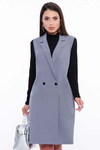 Жилет из костюмной ткани - модный тренд сезона осень-зима 2023 года. С ним легко можно создавать гармоничные многослойные образы и сочетать его с огромным количеством вещей из Вашего гардероба, будь то платье, классические брюки или джинсы. Отложной английский воротник, формирует V-образный вырез, который визуально корректирует фигуру. Удлинённый крой поможет скорректировать небольшие недостатки фигуры, чтобы Вы могли чувствовать себя уверенно в том, что на Вас надето. Изделие украшает имитация застежки на пуговицах.