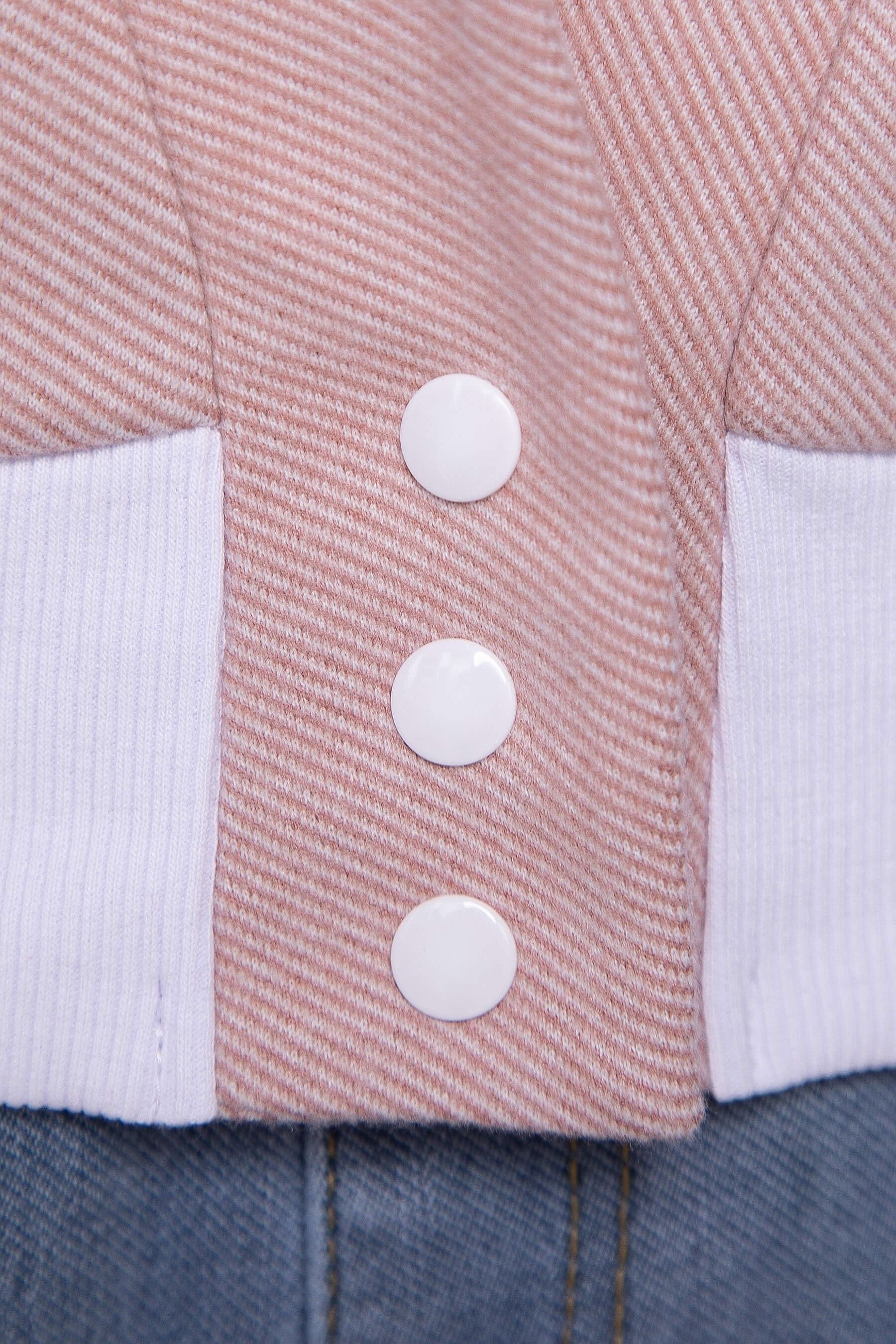 Укороченный бомбер-жакет с накладными карманами для прохладных дней. Глубокий V-образный вырез горловины завершается застежкой на три пуговицы. Такой практичный и комфортный жакет можно носить как с брюками, так и с джинсами. Манжеты на талии и рукавах выполнены из эластичной трикотажной резинки. Втачной рукав со спущенным плечом.